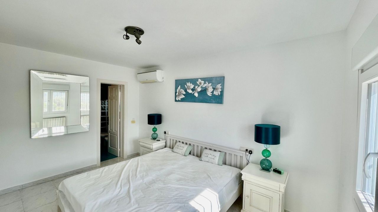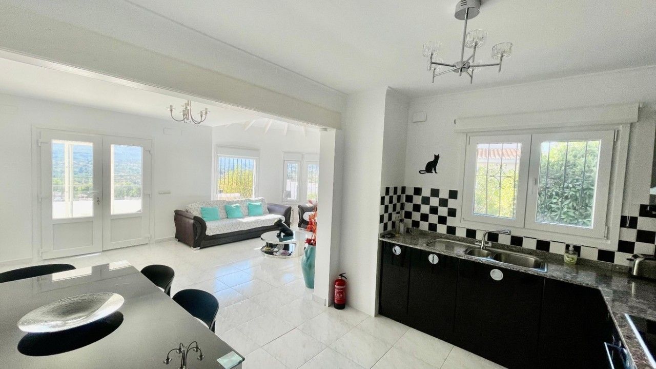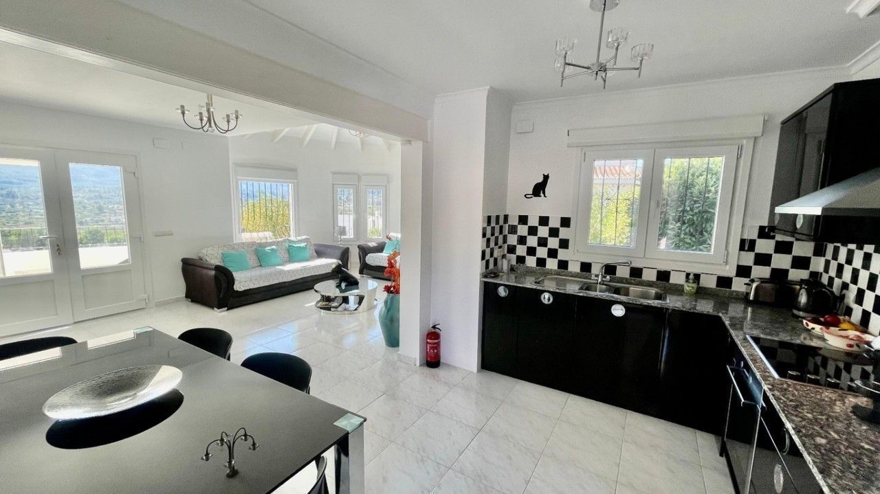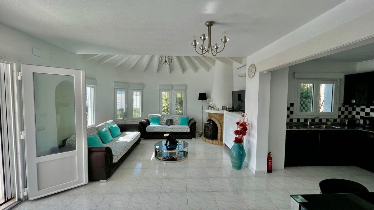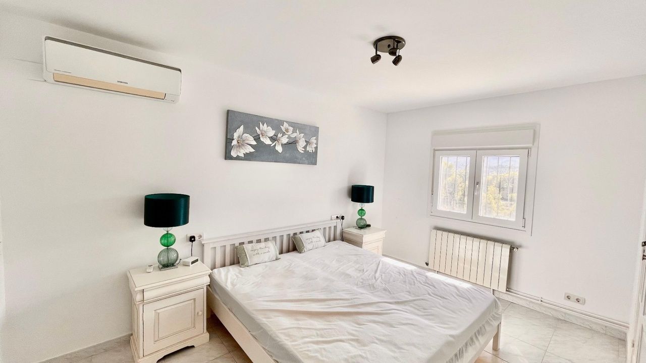 Luxe, lichte en luchtige moderne vrijstaande villa met spectaculair uitzicht op de bergen en de vallei op het zuiden, gelegen in de populaire en gewilde wijk Puerta del Valle. De hoofdwoning bevindt zich op één niveau en bestaat uit een ruime open woonkamer met eethoek, een stenen open haard met houtkachel, een galerijplafond met karakteristiek raam, airconditioning (warm en koud), dubbele openslaande deuren naar een glazen naya-eetkamer met prachtig uitzicht op de vallei en openslaande deuren naar een open balkon met zonneterras. De luxe, volledig ingerichte keuken heeft een buitendeur naar een achterliggend privéterras. Een gang leidt naar de hoofdslaapkamer met twee inbouwkasten, airconditioning (warm en koud) en een eigen inloopdouche. Op dit niveau zijn er nog twee tweepersoonsslaapkamers met inbouwkasten en een gezinsbadkamer met inloopdouche. De woning heeft ook een zelfstandig appartement met een zithoek, keuken, plafondventilator, tweepersoonsslaapkamer, opslagruimte en een eigen doucheruimte. Er is ook een grote bergruimte. Buiten is er een zwembad van 8 x 4 meter met privéterrassen, buitendouche, schaduwrijke zonneschermen om buiten te eten, onderhoudsarme mediterrane tuinen op terrassen met een irrigatiesysteem. De villa heeft een beveiligde toegangspoort met twee opritten: één op het lagere niveau en de tweede leidt naar de hoofdingang van het huis. Er is voldoende parkeergelegenheid en ook ruimte voor campers. Deze woning is voorzien van hoogwaardige dubbele beglazing en centrale verwarming op gas. Deze uitstekende woning zou een prachtige gezinswoning of een uitstekende vakantie-investering zijn. Een bezichtiging is essentieel om de vele bijzondere kenmerken en het prachtige uitzicht te kunnen waarderen.