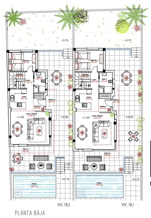 Deze exclusieve individuele villa's zijn ontworpen met hoogwaardige materialen en beschikken over 4 slaapkamers, 3 badkamers, meerdere privéterrassen, een solarium en een privézwembad. Elke woning heeft ook een eigen parkeerplaats en een ruime kelder, wat zowel comfort als functionaliteit biedt.