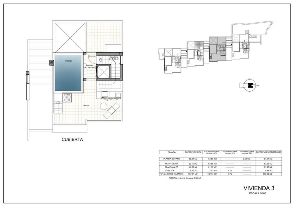 Elke villa strekt zich uit over drie verdiepingen en beschikt over 4 slaapkamers, 3 badkamers, privé lift, garage en dakterras met privé zwembad – ideaal om in alle privacy van zon en uitzicht te genieten.