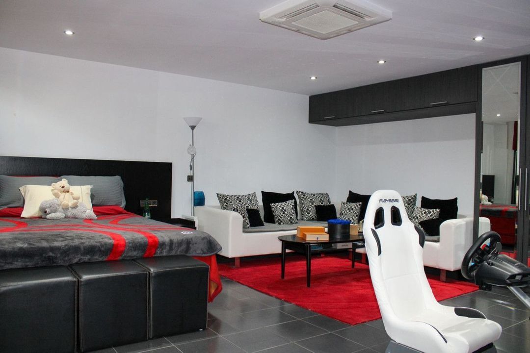 We continue down to the basement, where we find a large bedroom with jacuzzi and shower. There is also a good-sized storage room. This house must be seen, plenty of space for the large family.