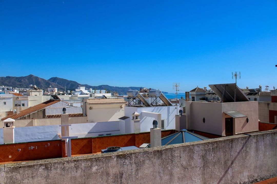 Property in the center of Nerja on four floors with three apartments independent of each other, and a roof terrace with sea views. Tourist license is available and the owner has an ongoing rental business. The ground floor is currently a premises, but permission is available to convert it into an apartment.