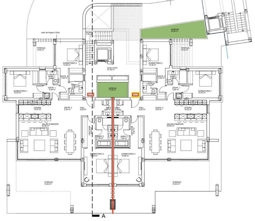 The residence is complemented by a spectacular 92 m² terrace, creating a true extension of the interior living areas. The east orientation allows for luminous mornings and comfortable afternoons, making this outdoor space ideal for: