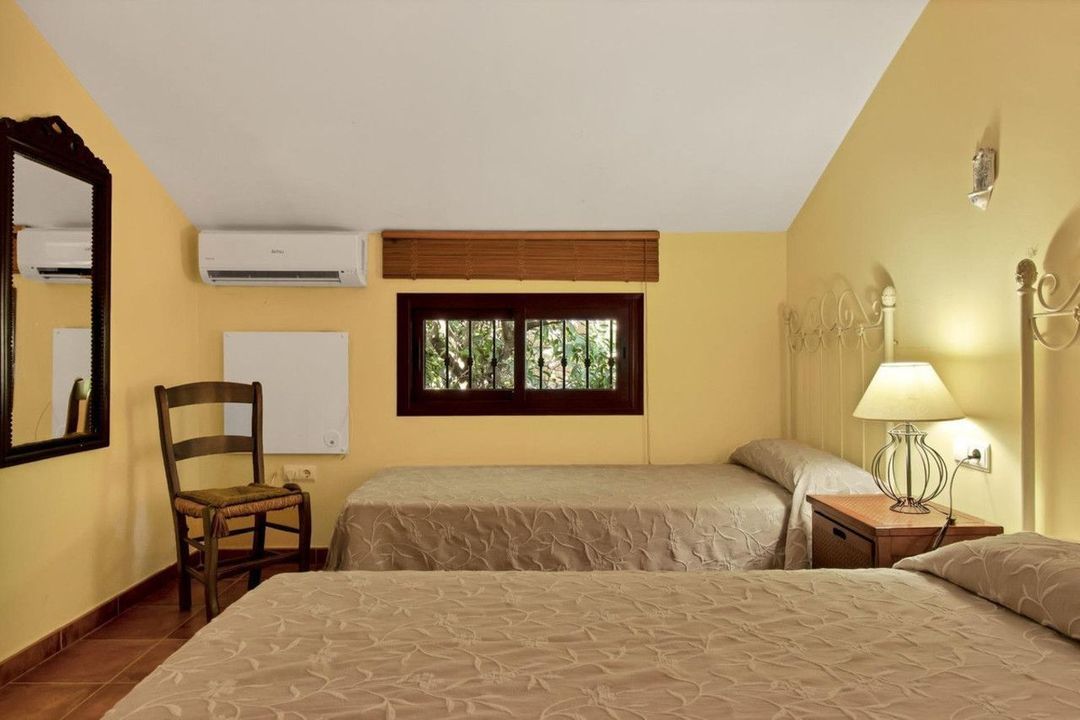Country house with a total interior surface, in very good condition, with over 19,503 sqm of lush gardens and mature trees, completely gated. Ideal for a first or a second residence, one can enjoy there the peace and total privacy of a perfect green oasis. On top of that, Ojen, at the foot of the Sierra de las Nievas, is only a 20 minute drive from the centre of Marbella. The house itself, a mediterranean style that perfectly fits in the environment, is well manteined, in very good condition, and has two levels. On the ground level there is the living room with chimney and open plan kitchen, and a guest bedroom with bathroom. On the second floor there are two large bedrooms and one bathroom...Additionally, the property also presents:.- Main house: 157m2 (3 bedrooms 2 bathrooms). Secondary home of 60m2 (1 bedroom, 1 bathroom).- Swiming pool of 37 sqm with a spacious area around, and it has a side construction of 13 sqm that includes a bar and a bathroom.- BBQ area of 200 sqm.- Chapel of 15 sqm meters for private ceremonies or meditation. - Bridge that crosses two streams with water all year round.- Private fountain and spring.- Private pinewood. Direct Access to "Ojen Ponds", an outstanding tourist attraction spot.- Economic exploitation of fruit trees, avocados, oranges, figs and mangos.- At present the property is rented as short term touristic rentals, celebration of events and selling of agricultural production. Offers also the possibility of reactivating the vineyard.