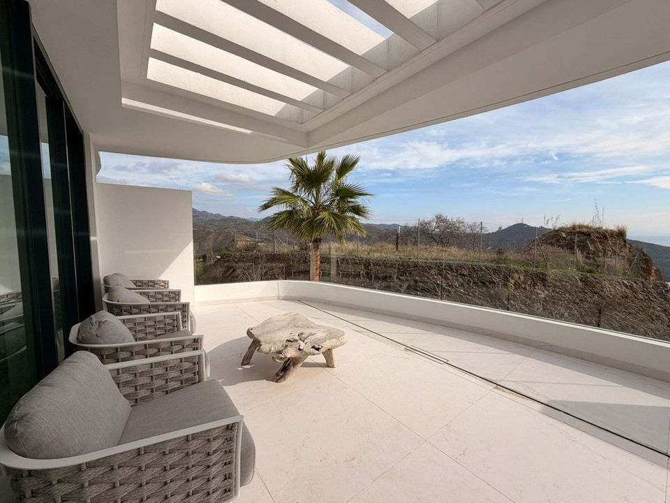 This elegant 2-bedroom first floor apartment for sale is located in the exclusive Granados development, set on the highest plot within the gated community of Palo Alto, Ojén, and enjoys beautiful panoramic sea views over Marbella and the Mediterranean.