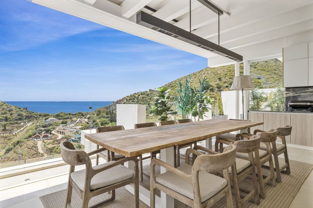 Overgoten met natuurlijk licht dankzij de gewilde zuidwestelijke oriëntatie, beschikt dit penthouse over een ruime zonneterras met adembenemend uitzicht op zowel de Middellandse Zee als de omliggende bergen van de Sierra de las Nieves. Vanuit de open leefruimte en de master bedroom geven grote schuifpuien direct toegang tot het terras, waardoor binnen- en buitenleven naadloos in elkaar overlopen.