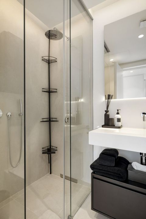 De master bedroom beschikt over een luxe en suite badkamer, terwijl twee extra slaapkamers een stijlvolle gedeelde badkamer delen, voorzien van hoogwaardige afwerking en moderne tegels. Het interieur combineert strakke porseleinen vloeren in de leefruimtes met warme houten vloeren in de slaapkamers – een perfecte mix van comfort en design.
