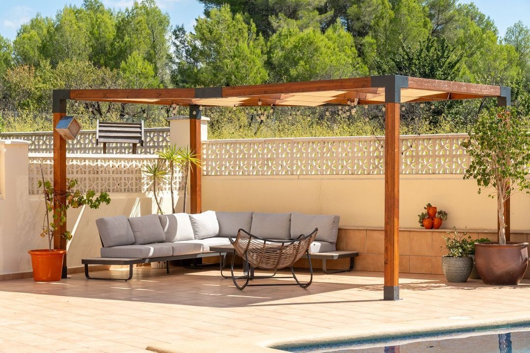 Outside- Extensive plot with some left natural to offer scope for grazing animals or extending garden, Swimming pool, open terraces, separate naya for dining/entertaining, pergola, double garage, carport, large outbuilding (possible stables, garage space, studio, further living etc), olive trees, fruit trees, vegetable garden.