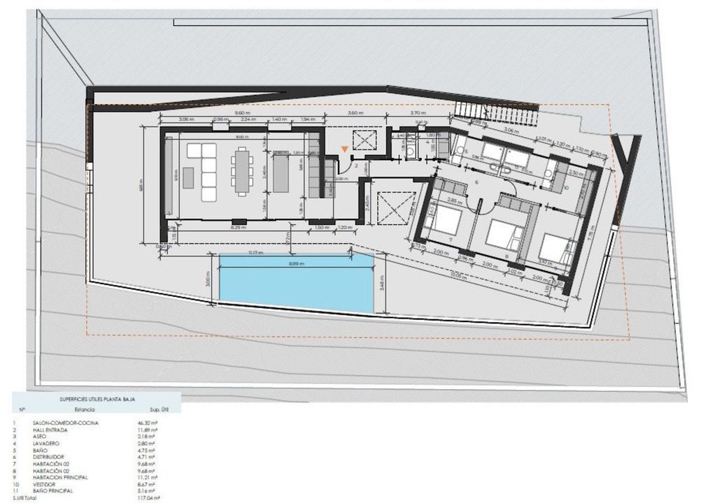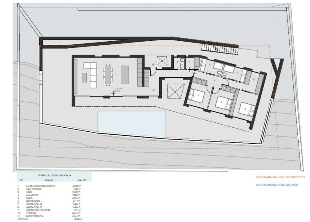 Moderne villa op een perceel van 800 m² in Monte Solana met 200 m² bebouwde oppervlakte, een privézwembad van 32 m² en een open terras van 40 m². Voorzien van kanaalairconditioning (warm/koud) voor comfort het hele jaar door. Een perfecte mix van stijl en buitenleven.