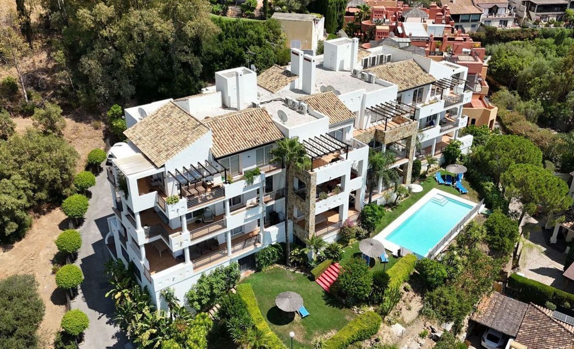Gelegen in een waar boutique complex met slechts 12 appartementen met een gemeenschappelijke tuin en zwembad, biedt dit appartement op de eerste verdieping een ongeëvenaard panoramisch uitzicht, rust en een instant vakantiegevoel.