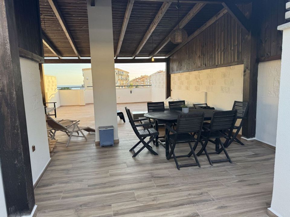 Impressive penthouse with sea views, in La Cala del Moral, minutes from the beach and all the amenities of the area. The property is distributed in 3 spacious bedrooms and 2 bathrooms, a living-dining room connected to a terrace with comfortable stairs to go up to the solarium, and a fully equipped kitchen ready to enjoy. In addition, the rooms have built-in wardrobes.