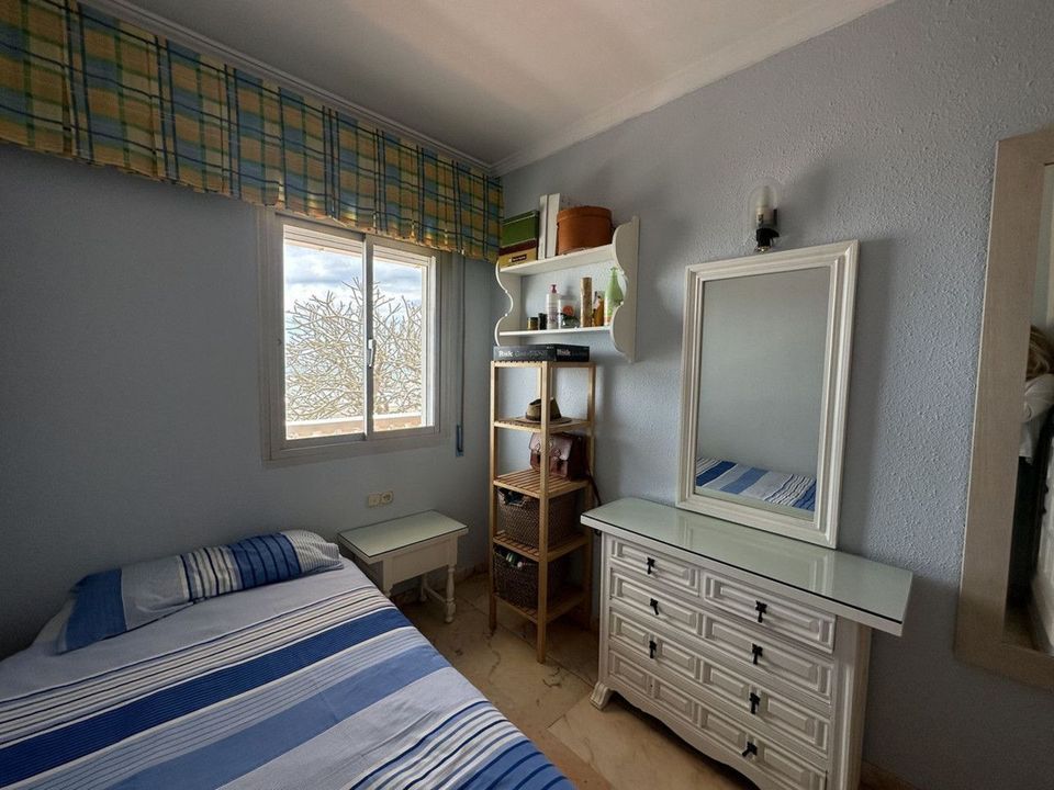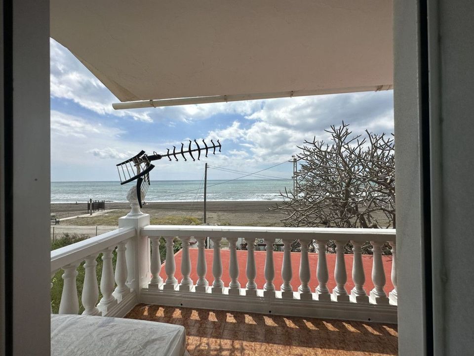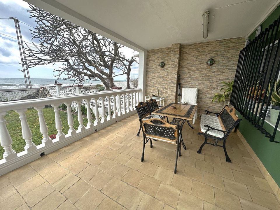 Beachfront! Semi-detached house in need of renovation with direct access to the beach, a beautiful front garden with the possibility of creating a pool, and a cozy patio at the rear. It is distributed over two floors: a living-dining room, a bathroom, and a kitchen. The upper floor has three bedrooms and a full bathroom. The basement has a spacious bedroom with a high window and a large storage room. Parking space.
