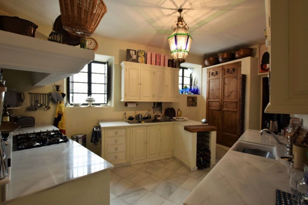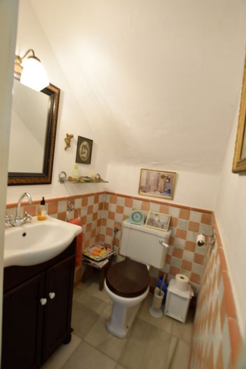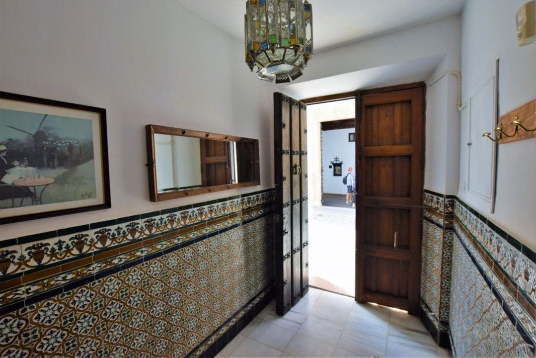 On the ground floor we find a hall with Sevillian tiles that gives way to a glass covered moorish patio with a tea room; on the right we have a spacious and cozy living room with fireplace and a bright Room in corner. On the other side, we have a toilet, a large dining room with 2 large windows and serving hatch from the kitchen which in turn is connected to an old living room with fireplace.