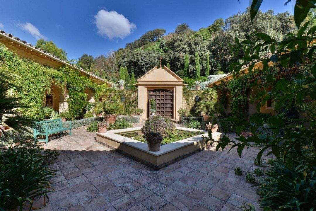 One of the most imposing and spectacular houses in Spain, it is set in a totally private valley surrounded by hillsides and rich forest on a rural property of 260,000m2. This palatial style property is located 14 kilometres north of Ronda, Hemingway's favourite town in Spain, with its famous bridge and bullring, the oldest in the country. The villa is designed and built to the exacting specifications of its owners 10 years ago, and is a reflection of their good taste. Almost 800m2 built. You enter through a typical Andalusian courtyard with large vegetation and a sense of serenity, a fish pond in the centre and different living areas. A hallway runs the length of the central wing of the house, at the end of the hallway is the fully fitted kitchen with top quality appliances, stainless steel cupboards and marble surfaces with direct access to the front patio and gardens with barbecue area, laundry room and utility room. On the opposite side is the dining room of enormous elegance with an 18th century mahogany dining table with French windows overlooking the well maintained lawn and surrounded by a pretty flower bed, a beautiful pergola and barbecue area for alfresco dining. The next room along the hallway is the "little" sitting room, a very relaxing room, with double doors opening onto the outside terrace. The spacious main living room with marble floors comes next with a huge fireplace and a hand-woven Indian carpet which was specially commissioned in Jaipur and took eight months to make. Next is a study or office, at the other end of the hallway is the very elegant and beautifully furnished master suite, with its own sitting room and wonderful views from the French windows that face two sides of the room. Impressive as it is, even more so is its enormous bathroom with bathtub, white marble washbasin and shower. The other four bedrooms are located in this wing of the house, one of them accessed from the hallway, the other three from the front courtyard. All are individually decorated and furnished, but all share the same impeccable quality and size as the other rooms in the house. All have large and attractive en-suite bathrooms. Majestic staircases descend to the terrace immediately below which has been laid out as another area of the formal garden, where fish ponds and tranquil sitting areas are enjoyed. A large part of the hillside of the estate has been cultivated with 1 hectare of vineyards producing really good quality "Reserva" grapes and over two hectares of olive trees. On one of the hillsides above the house, the owners have created a small Mediterranean garden amongst the trees, just another delightful place to discover as you explore this wonderful estate.