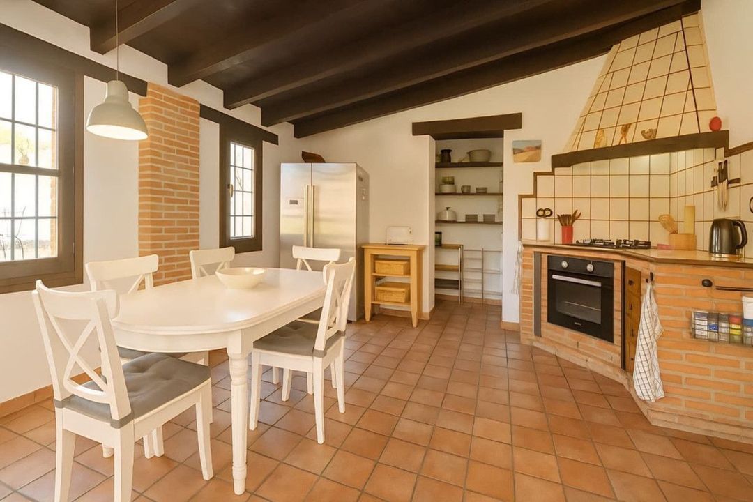 Bright interiors, wooden-beamed ceilings, and generous rooms preserve the authentic Andalusian rustic style.