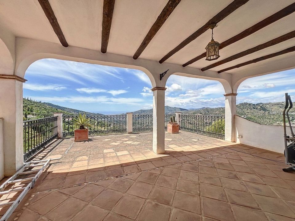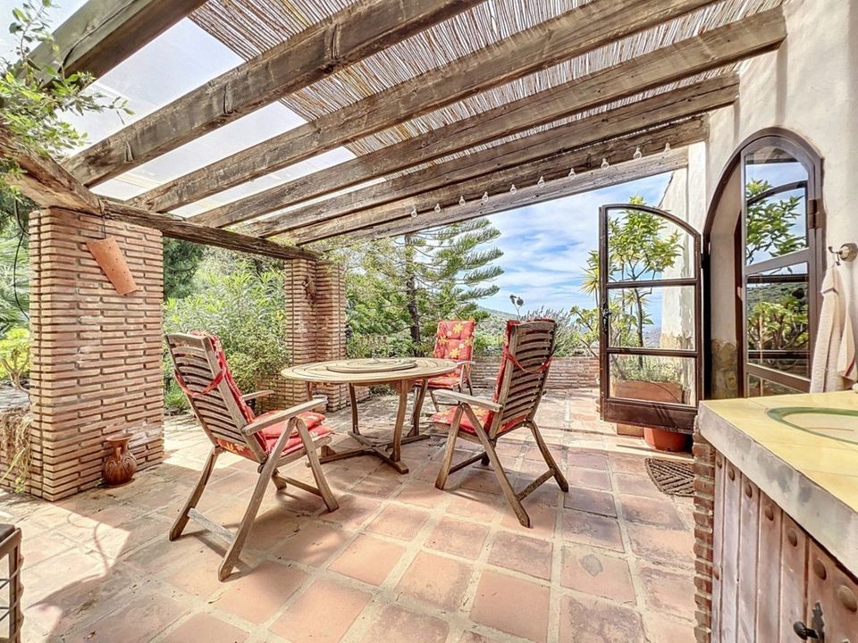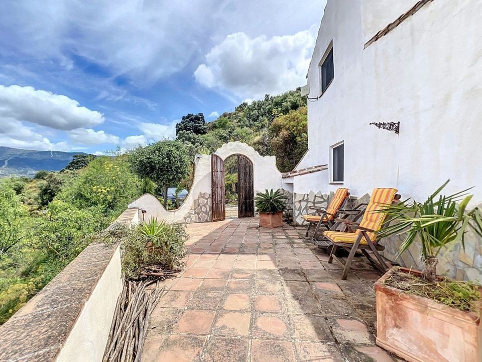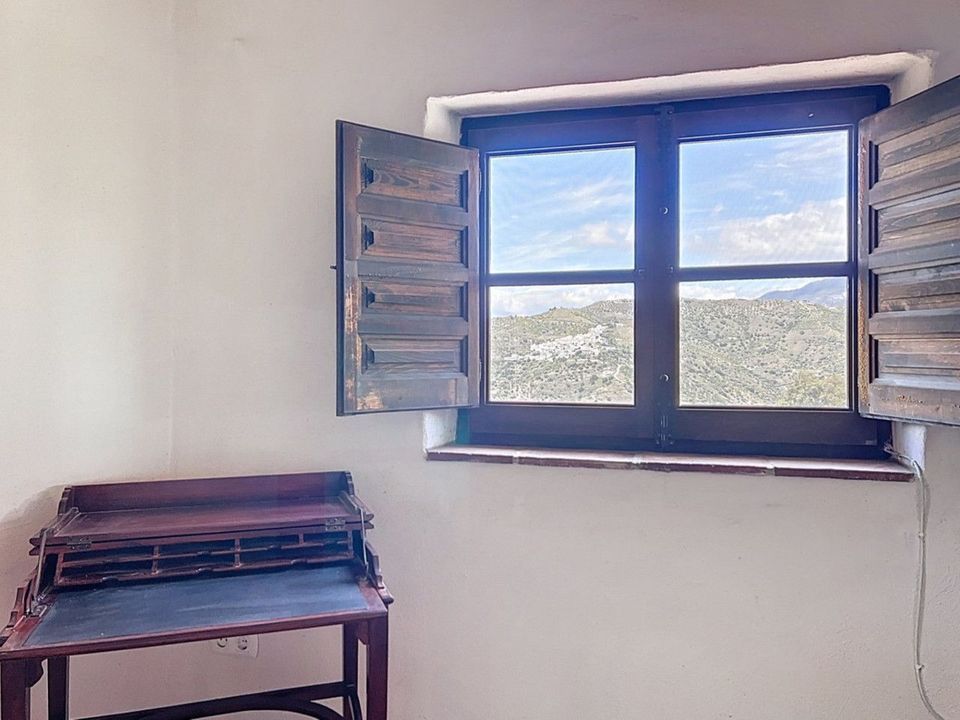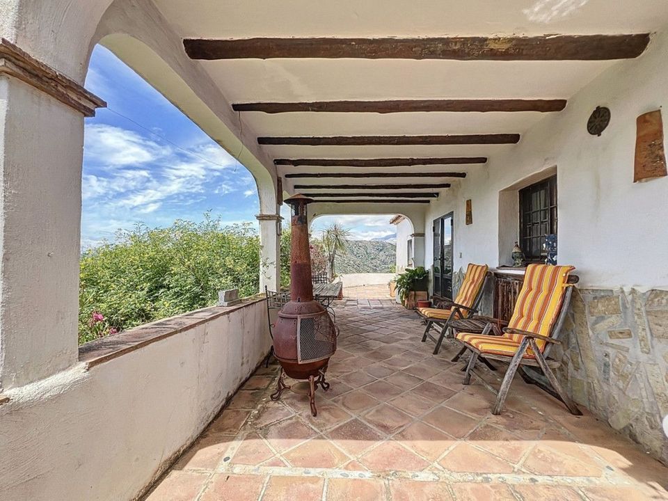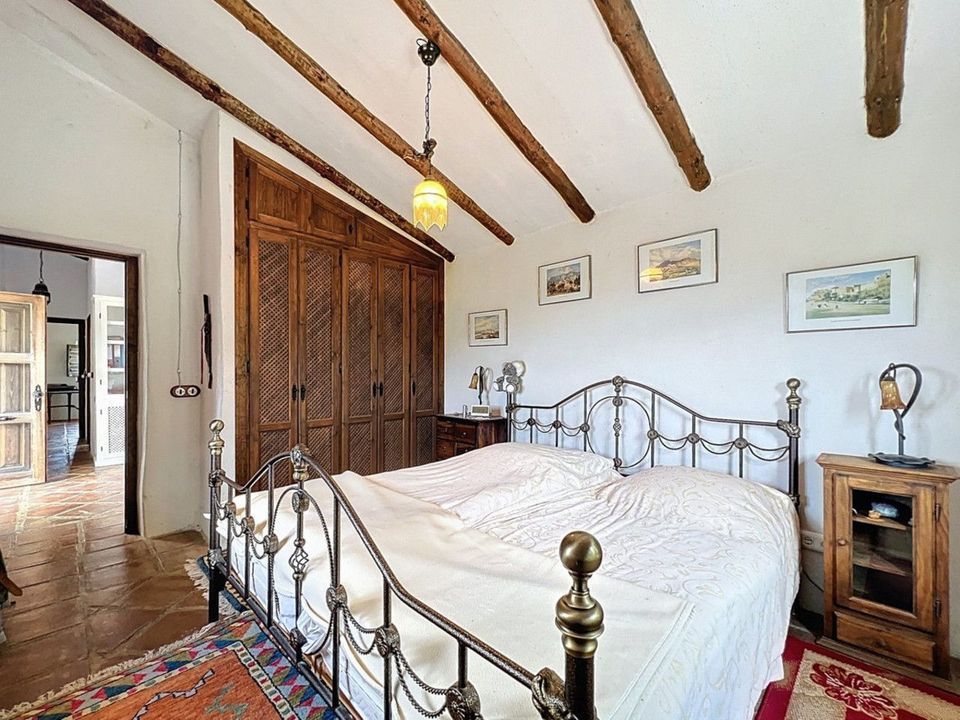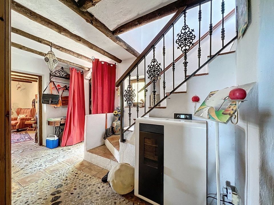 Deze charmante Spaanse landelijke woning in Sayalonga/Árchez, Málaga, combineert traditionele charme met modern comfort en dat alles met een adembenemend uitzicht als decor. De woning heeft een bebouwde oppervlakte van 199 m2 en 148 m2 woonoppervlak, verdeeld over twee verdiepingen, met drie slaapkamers en twee badkamers ideaal voor gezinnen of gasten. Binnen overheersen rustieke elementen: zichtbare houten balken onder witgekalkte plafonds geven elke ruimte warmte en karakter. Terracotta vloertegels benadrukken de mediterrane stijl en zorgen voor een harmonieus geheel. Een bijzonder pluspunt is de doordachte verwarmingsoplossing: een moderne pelletkachel in de gang verwarmt het hele huis efficiënt. Daarnaast is er in de woonkamer een gezellige houtkachel en een infraroodverwarming voor extra comfort op koelere avonden. Ook de badkamers zijn uitgerust met elektrische infraroodverwarming voor een aangename temperatuur. In zowel de woonkamer als de slaapkamers zijn inbouwkasten aanwezig, die praktische opbergruimte bieden en naadloos passen in het interieur. Rijke, rode meubels, decoratieve spiegels, kleurrijke kunstwerken en persoonlijke verzamelstukken geven de ruimte een ontspannen, bohemien sfeer. Een indrukwekkende boog verbindt het interieur met een van de terrassen en biedt uitzicht op het landschap. De keuken is zowel functioneel als sfeervol, met crèmekleurige kasten, granieten werkbladen, moderne apparatuur en een sierlijke betegeling. Een decoratieve afzuigkap maakt het geheel compleet. De twee badkamers hebben elk hun eigen karakter: de ene heeft een bad en rustieke siertegels, de andere is modern vormgegeven met strakke lijnen en hedendaagse voorzieningen. Beide sluiten perfect aan bij het karakter van het huis. De slaapkamers ademen eveneens Andalusische sfeer, met smeedijzeren bedden, houten meubels, warm licht en de eerder genoemde inbouwkasten die zorgen voor comfort en overzicht. Buiten vind je diverse terrassen met een prachtig uitzicht op zee, glooiende heuvels en witte dorpjes. Eén terras is overdekt en biedt uitbreidingsmogelijkheden hier zouden één of twee extra kamers kunnen worden gerealiseerd. Het buitengedeelte beschikt verder over een privézwembad, meerdere zitplekken, een buitenkeuken en een verzorgde tuin perfect voor gezellige avonden of rustige momenten in de natuur. Deze villa combineert tijdloze architectuur met persoonlijke accenten, doordachte voorzieningen en een spectaculair uitzicht een echt stukje Andalusisch leven. We zijn blij dat we dit droomhuis binnenkort aan u mogen voorstellen, hetzij persoonlijk, hetzij via een virtuele bezichtiging. Want deze wereld is uniek - net als onze Axarquía. In Andalusië. Aan de Costa del Sol. Hier, aan de zonnige kant van het leven...