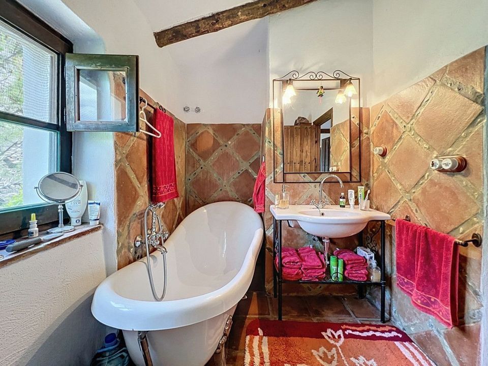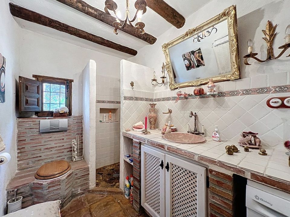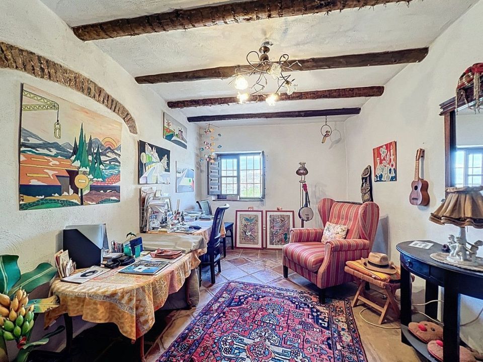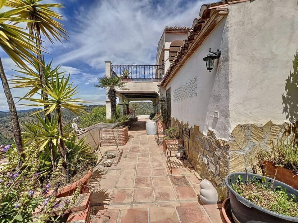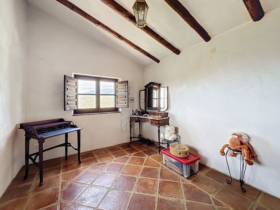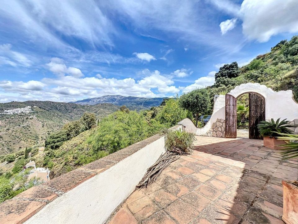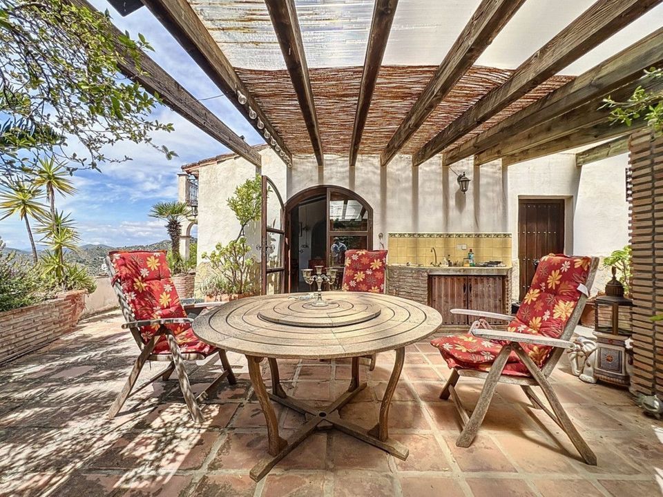 Deze charmante Spaanse landelijke woning in Sayalonga/Árchez, Málaga, combineert traditionele charme met modern comfort en dat alles met een adembenemend uitzicht als decor. De woning heeft een bebouwde oppervlakte van 199 m2 en 148 m2 woonoppervlak, verdeeld over twee verdiepingen, met drie slaapkamers en twee badkamers ideaal voor gezinnen of gasten. Binnen overheersen rustieke elementen: zichtbare houten balken onder witgekalkte plafonds geven elke ruimte warmte en karakter. Terracotta vloertegels benadrukken de mediterrane stijl en zorgen voor een harmonieus geheel. Een bijzonder pluspunt is de doordachte verwarmingsoplossing: een moderne pelletkachel in de gang verwarmt het hele huis efficiënt. Daarnaast is er in de woonkamer een gezellige houtkachel en een infraroodverwarming voor extra comfort op koelere avonden. Ook de badkamers zijn uitgerust met elektrische infraroodverwarming voor een aangename temperatuur. In zowel de woonkamer als de slaapkamers zijn inbouwkasten aanwezig, die praktische opbergruimte bieden en naadloos passen in het interieur. Rijke, rode meubels, decoratieve spiegels, kleurrijke kunstwerken en persoonlijke verzamelstukken geven de ruimte een ontspannen, bohemien sfeer. Een indrukwekkende boog verbindt het interieur met een van de terrassen en biedt uitzicht op het landschap. De keuken is zowel functioneel als sfeervol, met crèmekleurige kasten, granieten werkbladen, moderne apparatuur en een sierlijke betegeling. Een decoratieve afzuigkap maakt het geheel compleet. De twee badkamers hebben elk hun eigen karakter: de ene heeft een bad en rustieke siertegels, de andere is modern vormgegeven met strakke lijnen en hedendaagse voorzieningen. Beide sluiten perfect aan bij het karakter van het huis. De slaapkamers ademen eveneens Andalusische sfeer, met smeedijzeren bedden, houten meubels, warm licht en de eerder genoemde inbouwkasten die zorgen voor comfort en overzicht. Buiten vind je diverse terrassen met een prachtig uitzicht op zee, glooiende heuvels en witte dorpjes. Eén terras is overdekt en biedt uitbreidingsmogelijkheden hier zouden één of twee extra kamers kunnen worden gerealiseerd. Het buitengedeelte beschikt verder over een privézwembad, meerdere zitplekken, een buitenkeuken en een verzorgde tuin perfect voor gezellige avonden of rustige momenten in de natuur. Deze villa combineert tijdloze architectuur met persoonlijke accenten, doordachte voorzieningen en een spectaculair uitzicht een echt stukje Andalusisch leven. We zijn blij dat we dit droomhuis binnenkort aan u mogen voorstellen, hetzij persoonlijk, hetzij via een virtuele bezichtiging. Want deze wereld is uniek - net als onze Axarquía. In Andalusië. Aan de Costa del Sol. Hier, aan de zonnige kant van het leven...