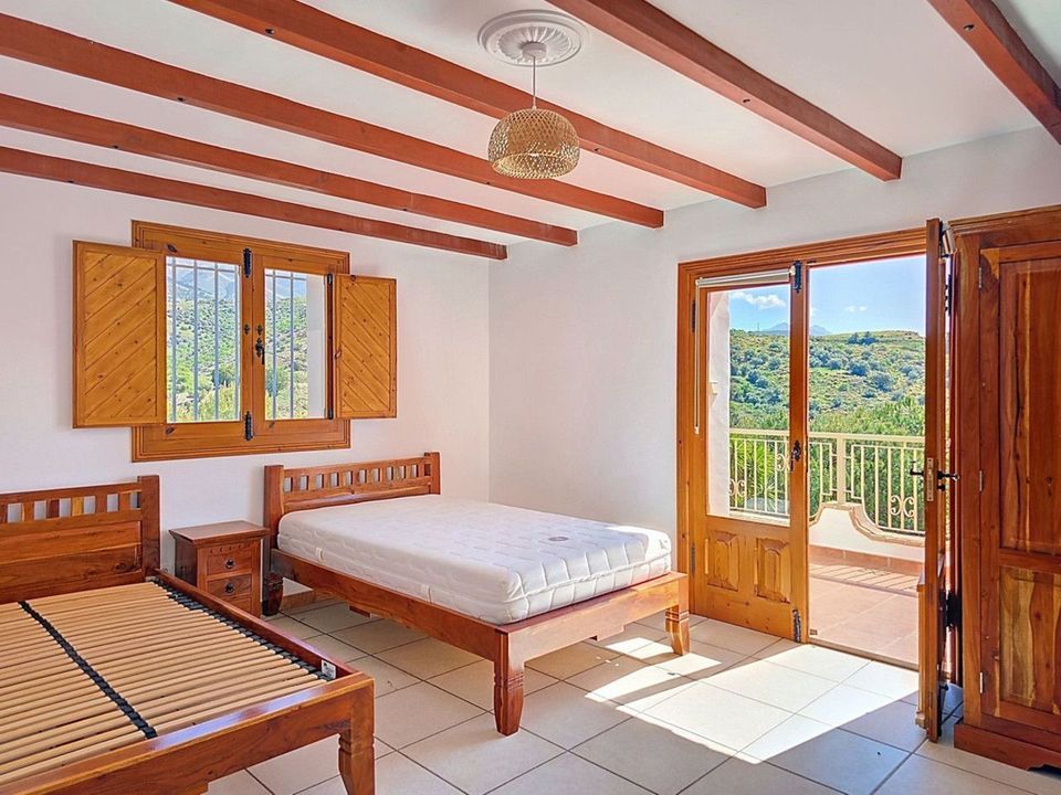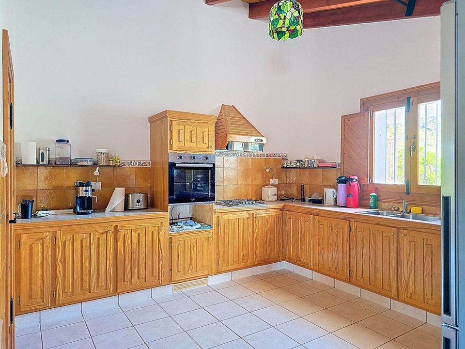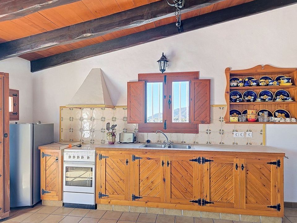 Onder de hoofdvilla biedt een ruime garage met indrukwekkende, op maat gemaakte houten deuren voldoende ruimte voor meerdere voertuigen of kan gemakkelijk worden omgebouwd tot een werkplaats, fitnessruimte, kunstatelier of zelfs vier extra slaapkamers. Rondom de villa bieden bijna 100 m² aan terrassen en zonovergoten solaria een spectaculair panoramisch uitzicht op het Sierra de Almijara-gebergte.