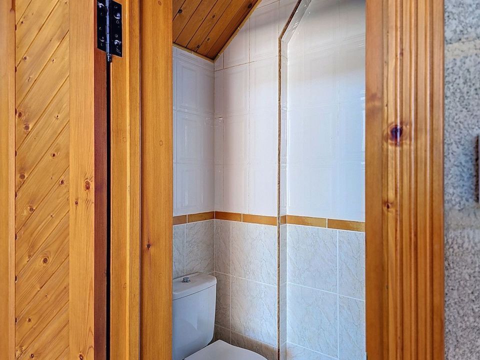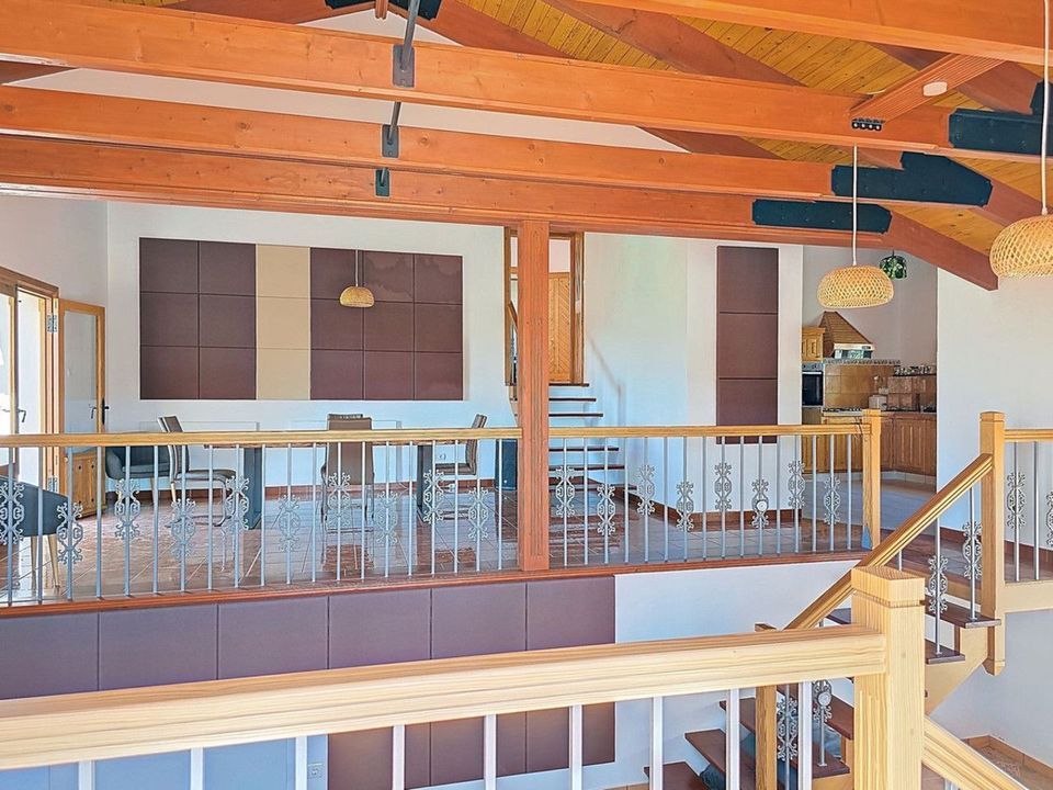 De hoofdwoning biedt drie royale slaapkamers, elk met een eigen badkamer en directe toegang tot het terras, waardoor binnen en buiten naadloos in elkaar overvloeien. De open woonkamer loopt natuurlijk over in het bovenste terras – de perfecte ruimte om gasten te ontvangen of gewoon te ontspannen terwijl u geniet van het steeds veranderende berglandschap.