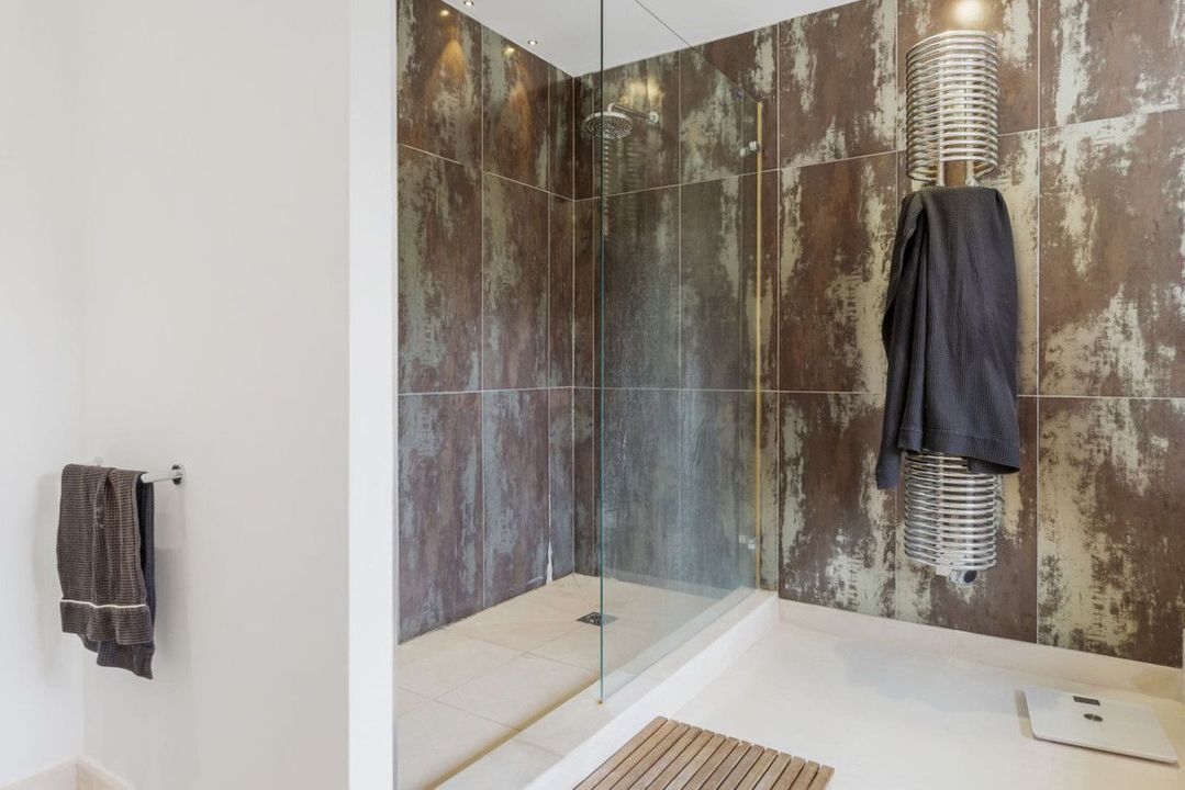 The upper level boasts two large bedrooms with en-suite bathrooms, both leading onto a spacious terrace overlooking the gardens and pool. Additionally, there are two more bedrooms sharing a bathroom, along with a separate informal lounge/TV room.