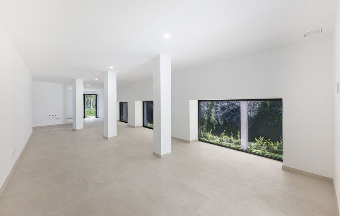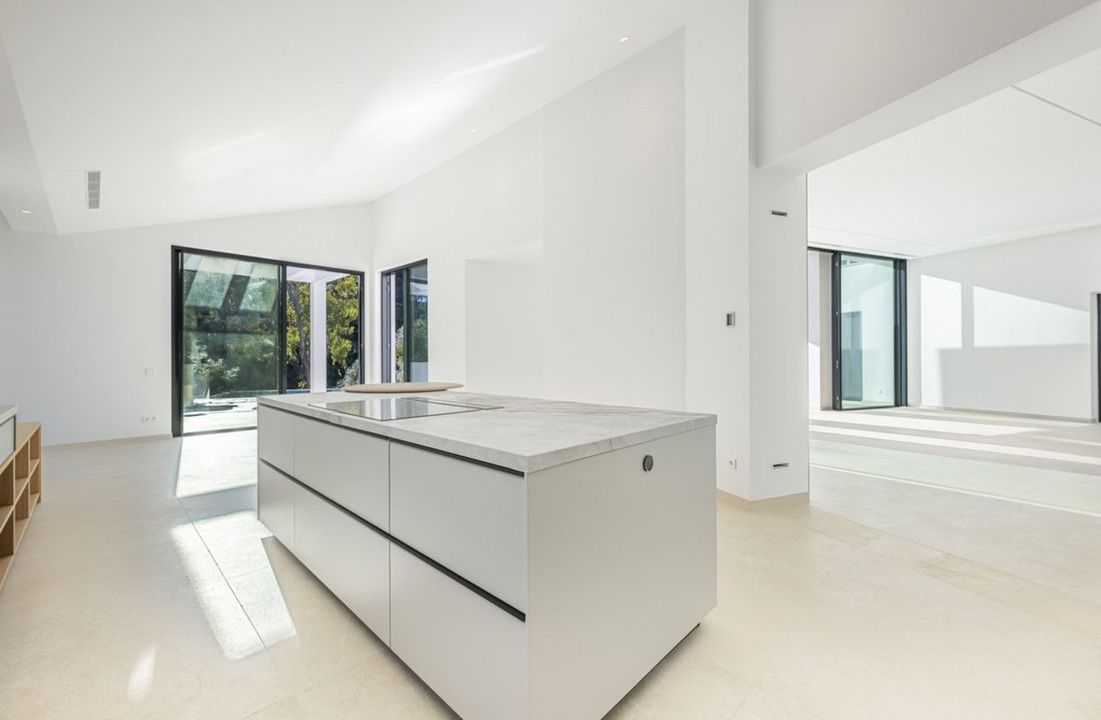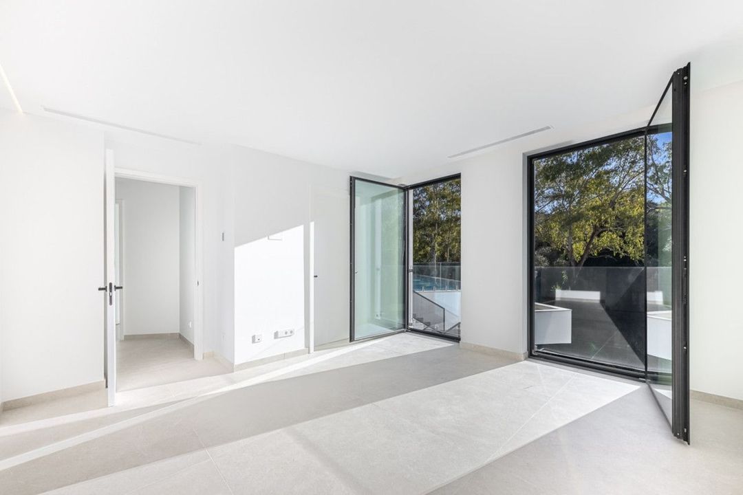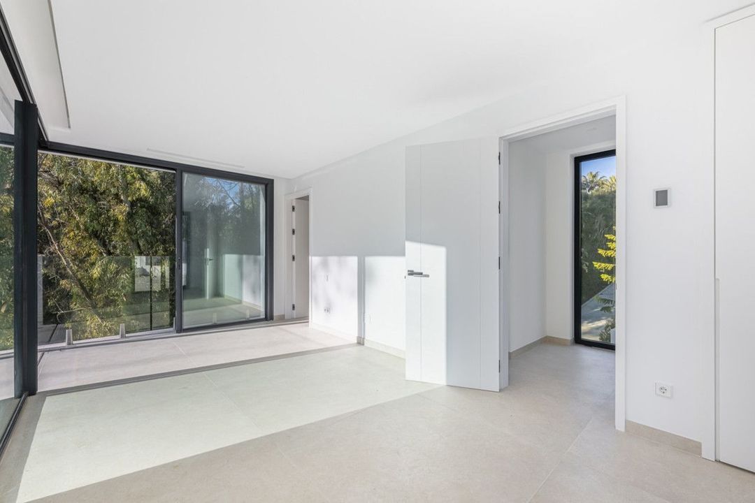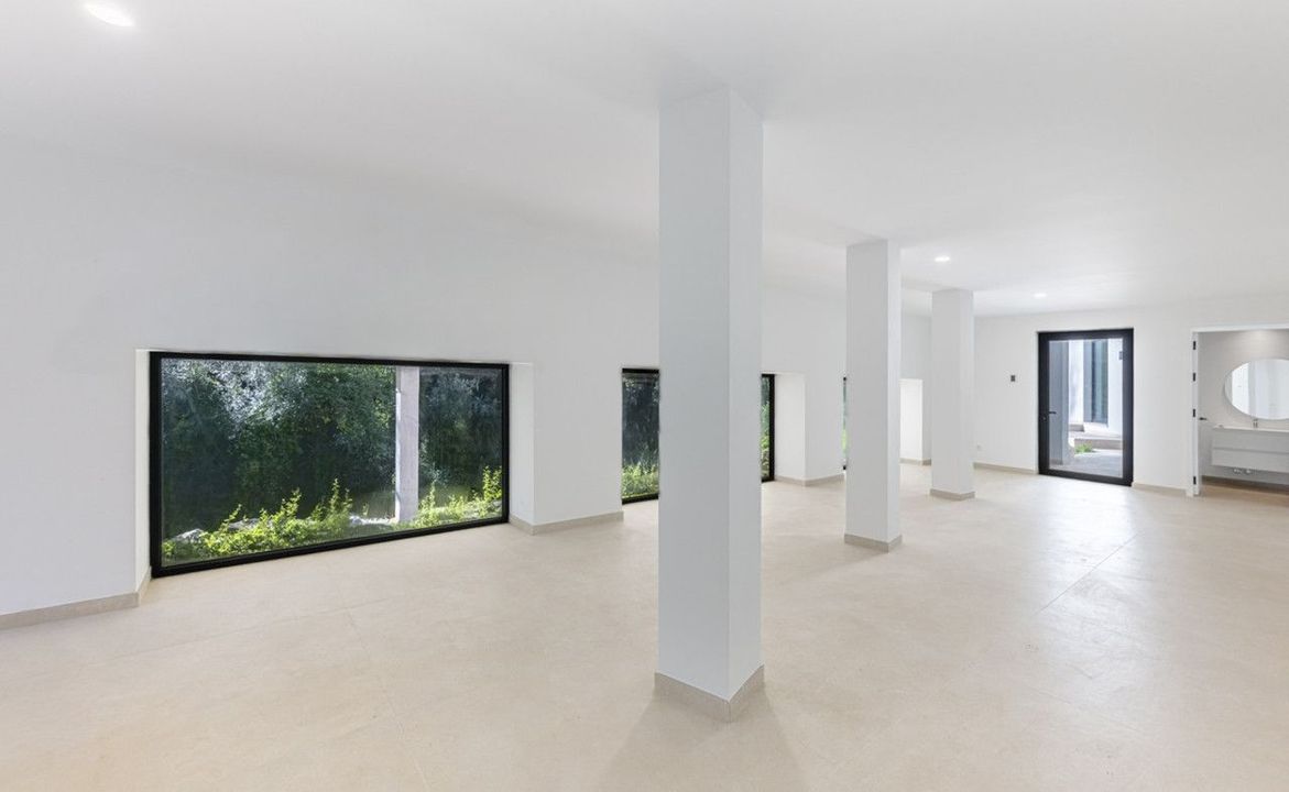 Verscholen aan het einde van een rustige doodlopende straat in de vredige F Zone van Sotogrande, is deze opvallende nieuwe villa onlangs voltooid. Ontworpen met het moderne leven in gedachten, benut de woning haar zuidelijke ligging optimaal, waardoor het interieur wordt overspoeld met natuurlijk licht en er een prachtig uitzicht is op de weelderige tuin en het rustgevende decor van inheemse bossen.