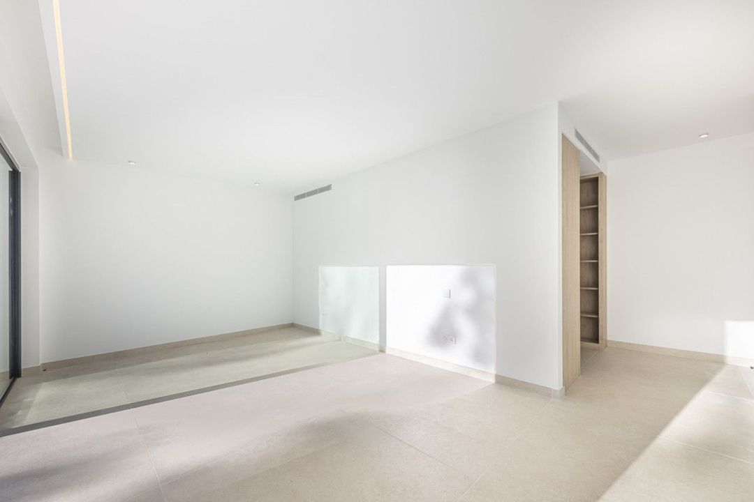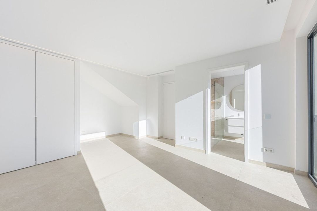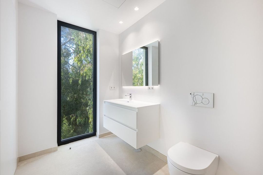 De woning is uitgerust met hoogwaardige voorzieningen, waaronder vloerverwarming, volledige airconditioning en een geavanceerd domoticasysteem voor moeiteloze bediening van verlichting, klimaat en beveiliging. Buiten ligt het 14,5 m x 5 m zoutwater-infinity zwembad—zonneverwarmd voor energie-efficiëntie—in harmonie met de aangelegde tuinen, wat een ideale ruimte creëert om te ontspannen en gasten te ontvangen.