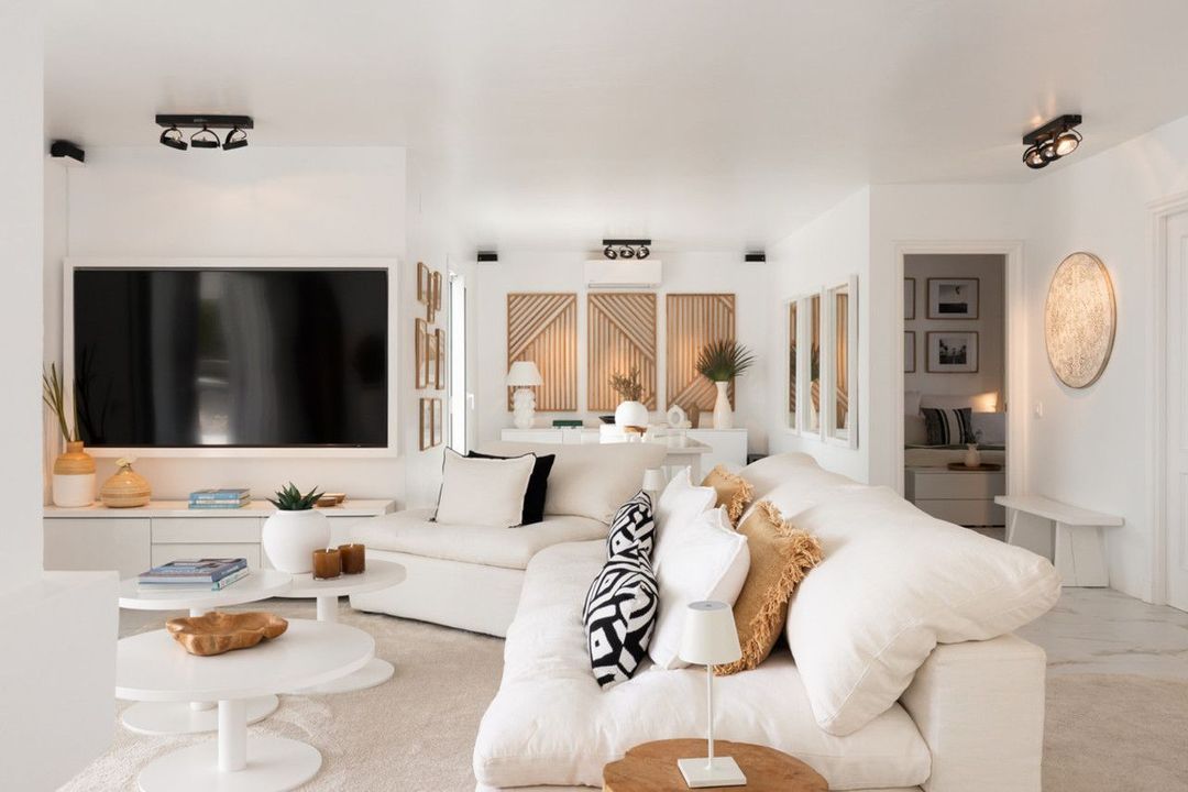 A beautifully renovated Andalusian family home with a calm, understated elegance, villa enjoys open southerly sea views from the moment you step through the entrance. The main living level is designed for effortless indoor-outdoor living, with an open-plan kitchen, dining, and lounge area flowing directly onto a generous covered terrace. From here, the views stretch across the pool, the golf course, and out to the Mediterranean, creating an ideal setting for both quiet mornings and relaxed entertaining.