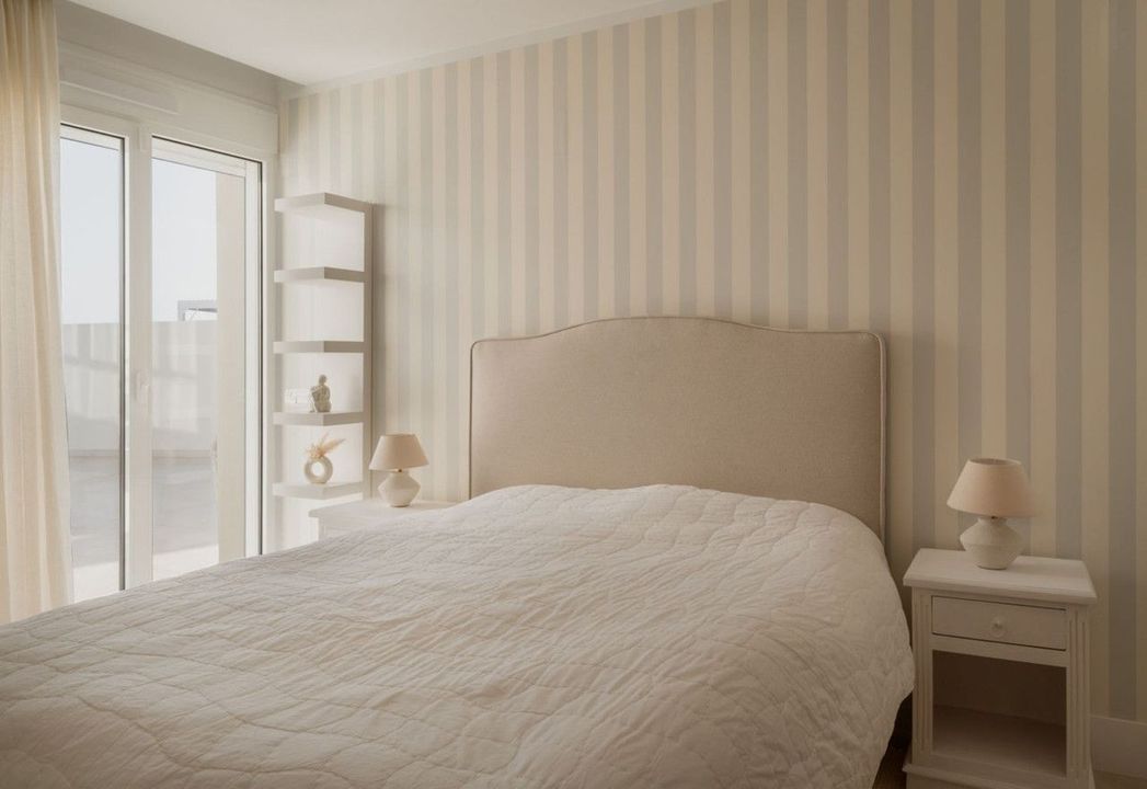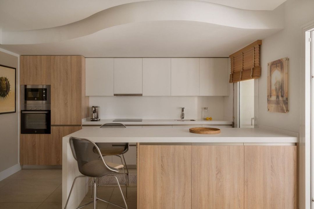 Inside, natural light shapes every corner. The heart of the home is an open-plan kitchen and living space - an elegant, fluid area that invites both daily ease and quiet gathering. The layout offers two serene bedrooms and a third space that transitions effortlessly between guest room and home office. Two refined bathrooms follow the same considered aesthetic.
