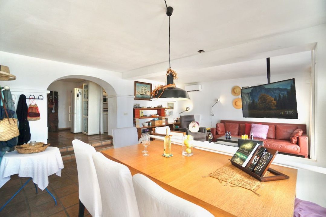 Heb je altijd gedroomd van een appartement met een ruim terras en panoramisch uitzicht op de zee en de Peñon de Ifach, dan is dit je kans! Het appartement bestaat uit twee verdiepingen die met elkaar verbonden zijn via een binnentrap, die je kunt betreden vanaf straatniveau of direct via de hoofdverdieping. De gemeenschappelijke buitentrap leidt naar de voordeur om het ruime privéterras te betreden en je wordt meteen overweldigd door het turquoise water van de Middellandse Zee en het indrukwekkende uitzicht recht voor je! Hier kun je de hele dag van de zon en de voorbij varende boten genieten. Grote ramen openen naar de lichtrijke woon-eetkamer in traditionele Ibiza-stijl met terracotta vloeren. Verder op dezelfde verdieping vindt je een eerste kleinere kamer of kantoor, de aparte keuken, een badkamer met bad en een tweepersoonsslaapkamer met een ingebouwde kledingkast.Op de onderste verdieping vind je nog twee slaapkamers en toegang tot een patio met veel potentieel. Hier kun je je eigen privé-oase creëren met planten etc. of het ombouwen tot een parkeerplaats. Tot slot is er ook nog een apart toilet, een buitendouche en een wasruimte met boiler. Het is ook mogelijk om het benedengedeelte te gebruiken voor commerciële doeleinden.Dit appartement ligt op een unieke locatie en je zou er na een verbouwing een juweeltje van kunnen maken.