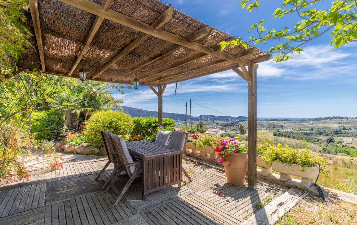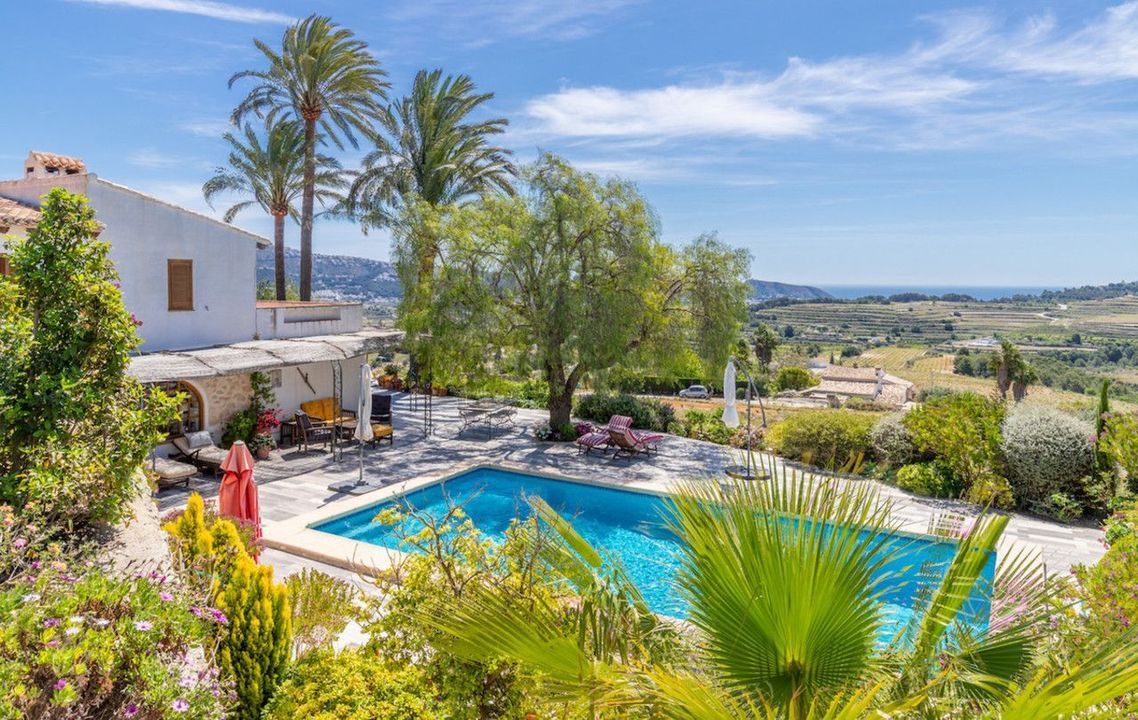 Het uitzicht, alsof het een ansichtkaart is, is open naar de groene velden van wijngaarden met de zee en de Cap d'or van Moraira op de achtergrond, gebouwd op de heuvel met zuidwestelijke oriëntatie, wat het genot van het milde klimaat van het gebied garandeert, beschermd tegen de noordenwind en met de zuidenwind die de natuurlijke airconditioning van het gebied is in het zomerseizoen.