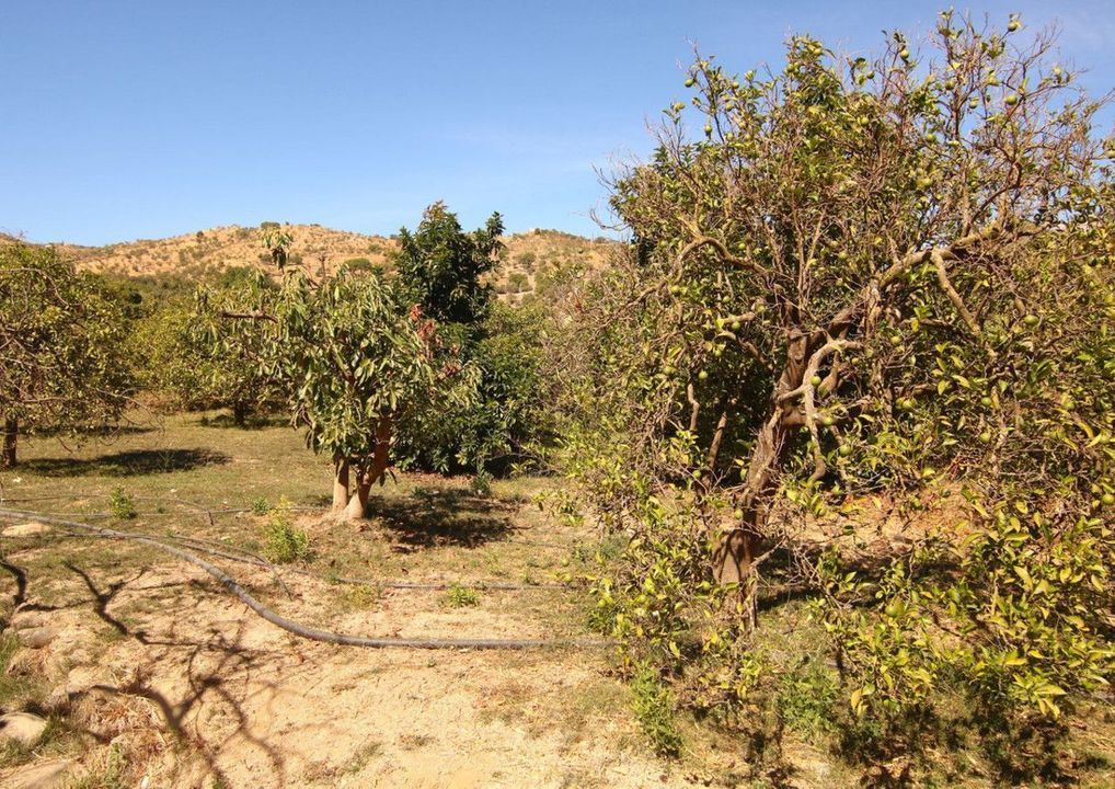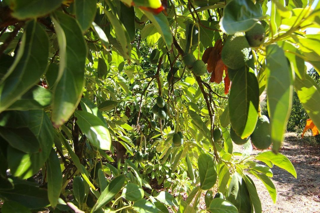 Irrigated farmland with avocado and orange trees in full production.
