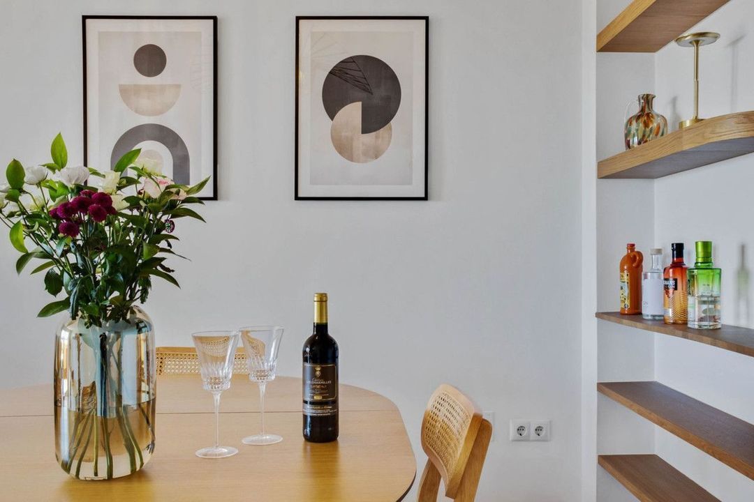 Upon entering this home, you will discover a space where design and comfort blend seamlessly. Fully furnished and decorated with high-end pieces, the layout flows harmoniously: an elegant entrance hall leads to a spacious and bright living-dining room, featuring a sophisticated solid wood custom-made bar. Natural light floods the space through a large window connecting to the terrace, offering stunning sea views.