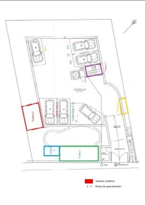 Two private parking spaces (11 m² and 10 m²) and a storage room are included in the price.