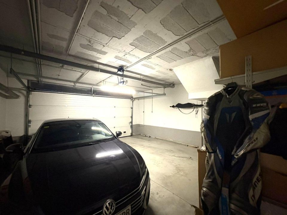 In the basement, there is a storage room of approximately 20 m2 and a spacious garage with an automatic door and room for two vehicles.