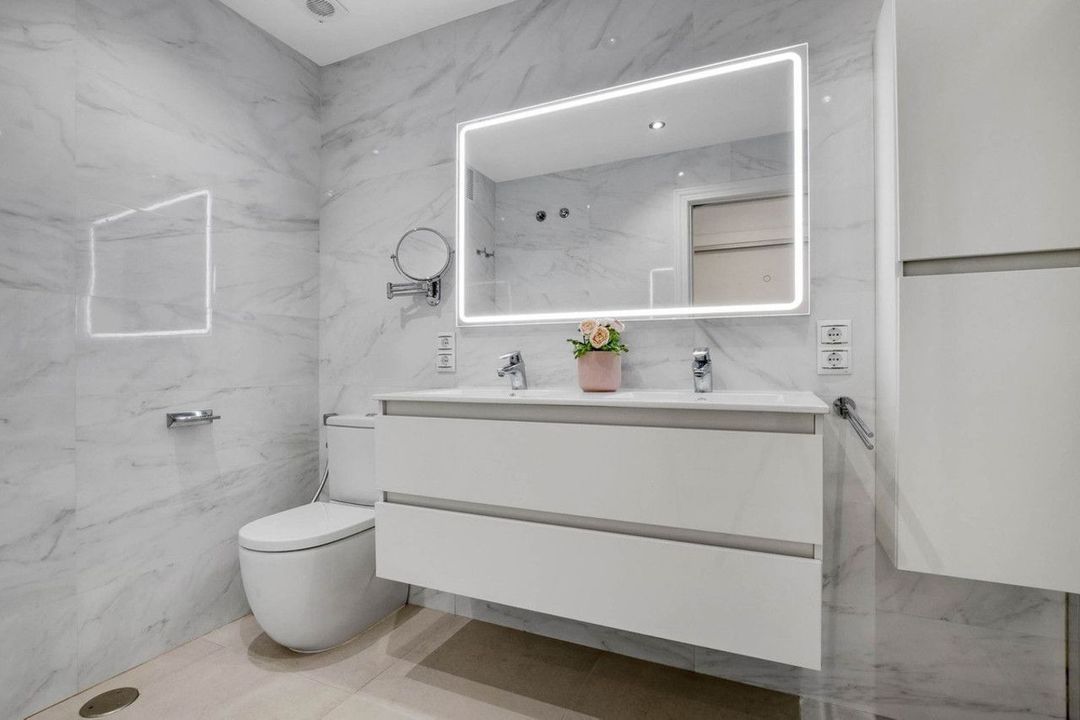 This property has been recently renovated with high-quality materials and is ready to move into. It boasts marble floors, centralised hot and cold air conditioning, high ceilings, and solid interior walls, in a building constructed in 2002.