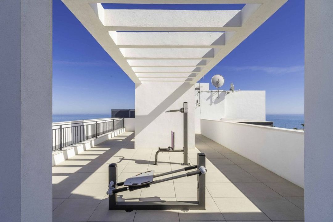 It has two swimming pools, one outdoor and one heated, two garages and an outdoor gym area on the same floor. The penthouse is unique on the floor and faces the sea with unbeatable privacy as it is the top floor of the building with dreamy sunrises.