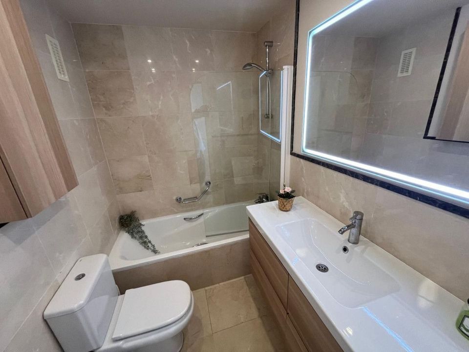 The apartment (74m2) has a fantastic panoramic view almost directly to the sea and mountains. The terrace of 19m2 is southeast, and has very rare strong winds on the terrace, so you really have the opportunity for a place to relax and enjoy the exceptional Costa del Sol climate all year round.