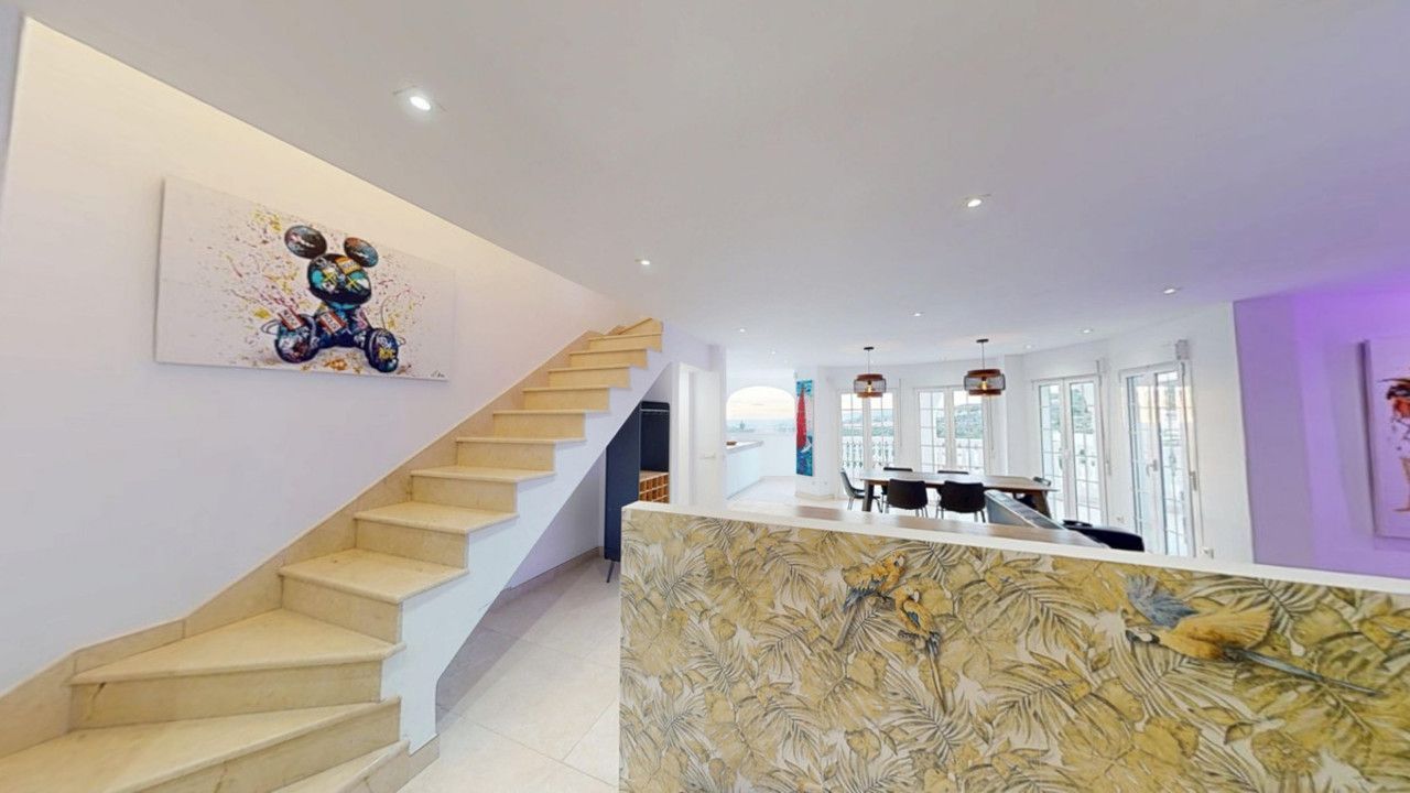 Deze spectaculaire villa in Torrox valt op door zijn ruimtelijkheid, lichtsterkte en adembenemende uitzichten op zowel de zee als de bergen, en biedt een ideale omgeving om te genieten van de rust en de mediterrane levensstijl. Op de begane grond van het huis vinden we twee slaapkamers met eigen badkamers, waarvan één ook een kleedkamer heeft, evenals een aparte badkamer voor meer comfort. De woon-eetkamer met open keuken is ruim en zeer licht, dankzij de grote ramen waarmee je kunt genieten van een prachtig uitzicht op zee en bergen. Vanaf deze verdieping is er toegang tot een gezellig overdekt terras, perfect om het hele jaar door te ontspannen. Op de bovenverdieping is er een grote slaapkamer, met toegang tot een privéterras vanwaar je kunt genieten van werkelijk spectaculaire uitzichten. Het hele huis valt op door zijn grote lichtsterkte en ruime ruimtes. Buiten heeft het terrein een buitenkeuken met een pizzaoven, ideaal voor vergaderingen en ontspannen buiten. Onderaan het perceel vinden we een ruim terras, een zomerkeuken, een zwembad en een gastenappartement, met een onafhankelijke en zeer veelzijdige ruimte. Het gastenappartement heeft een woon-eetkamer met een kleine keuken, een volledige badkamer en een ruime kamer, perfect om familie of vrienden in volledige privacy te huisvesten. Daarnaast beschikt het pand over een grote carport, die comfort en extra ruimte biedt. Een uniek, licht huis met meerdere mogelijkheden, gelegen in een bevoorrechte wijk van Torrox, ideaal als permanente woning en als investering. We zijn verheugd dat we deze woning binnenkort aan u kunnen presenteren, hetzij persoonlijk of via virtuele bezichtiging. Omdat deze wereld uniek is - net als onze Axarquía. In Andalusië. Aan de Costa del Sol. Hier, aan de zonnige kant van het leven...