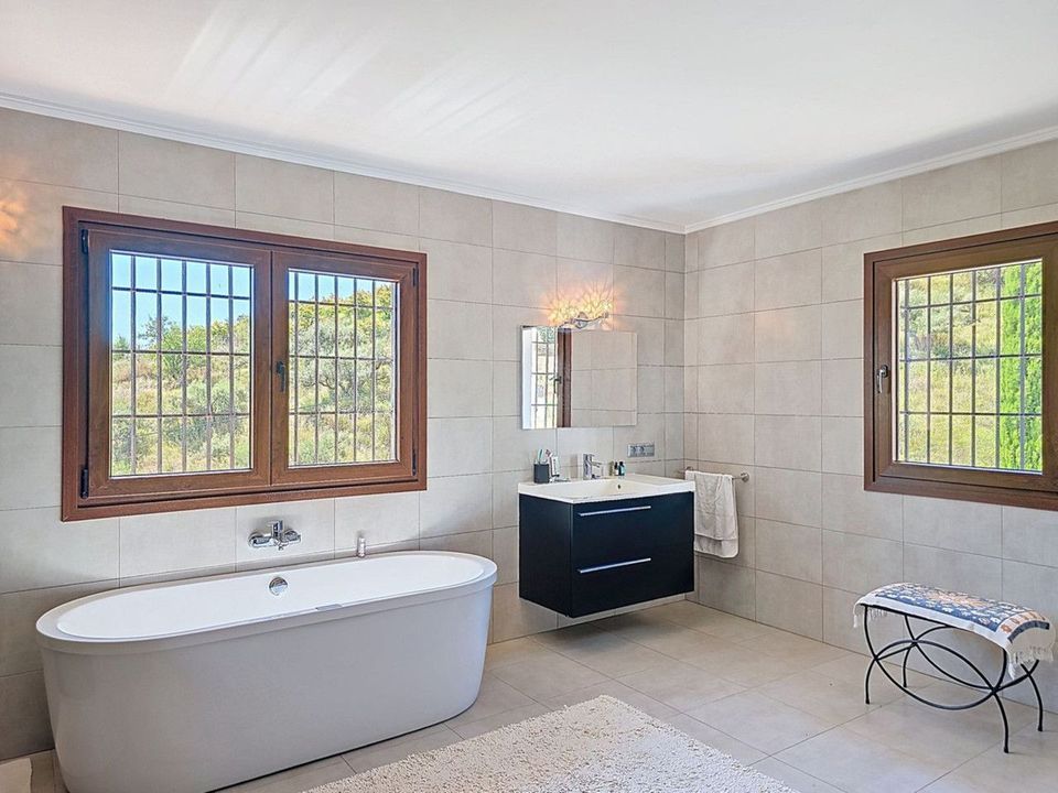 De buitenruimte is een waar paradijs, met verschillende terrassen en een verfrissend privézwembad. Een unieke troef is de eigen wijnkelder (bodega), gevestigd in een natuurlijke ondergrondse ruimte, waar u uw favoriete wijnen op perfecte temperatuur kunt bewaren. De villa combineert duurzaamheid met comfort dankzij zonnepanelen en een enorme wateropslag van 160.000 liter.