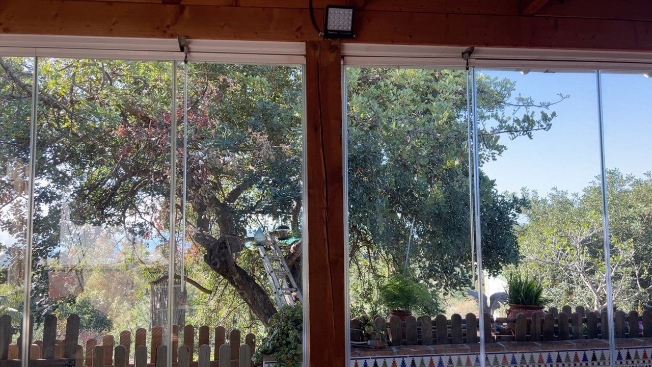 The property has several buildings. The main house is an open space that combines a cozy living-dining room with a functional kitchen equipped with a central island. An elegant bookcase separates the master bedroom and bathroom, creating an intimate and cozy atmosphere. The large front porch, adorned with glass curtains, offers spectacular views of the Mediterranean Sea, turning every moment into a unique experience.