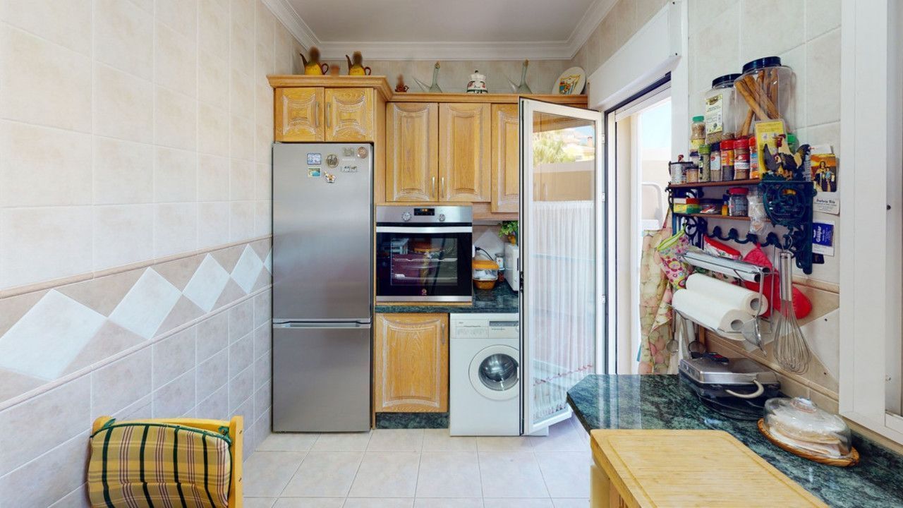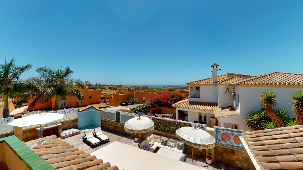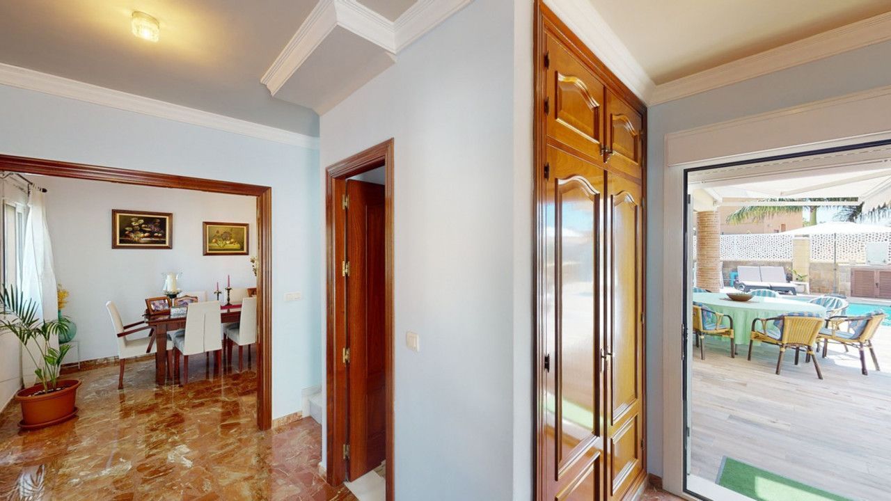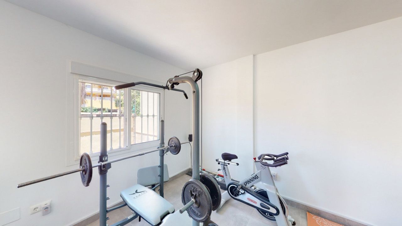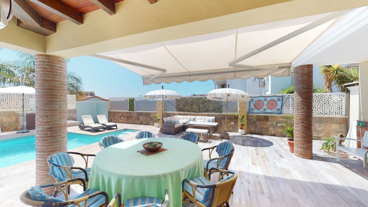 Mooie, gerenoveerde twee onder één kap woning in de rustige woonwijk Viña Malaga. Het huis met drie verdiepingen heeft twee ingangen. Het is verdeeld in 3 slaapkamers, 3 badkamers, een gastentoilet, 2 keukens, een woonkamer en een thuisbioscoop. De buitenruimte biedt verschillende ontspanningsruimtes, een zwembad en een buitenkeuken met barbecue. In het souterrain is er een dubbele garage, die nu in gebruik is als bioscoop, evenals een fitnessruimte, een keuken en een gastentoilet. Dit deel kan gebruikt worden voor het ontvangen van vrienden of als zelfstandig appartement met 2 slaapkamers. Vanuit de garage is er directe toegang tot de begane grond. De begane grond heeft een hal met garderobe, een badkamer met douche, een keuken met alle moderne apparatuur en een uitgang naar het balkon, een woon- en eetkamer met open haard. Vanuit de woonkamer is er tevens een uitgang naar de prachtige buitenruimte. Daar vindt u het grote terras met veel zit- en ligplekken rond het zwembad van 4 x 8 m, een buitendouche en stijlvolle decoraties. Er is ook een rustieke bar en een barbecue met water en elektriciteit. 's Avonds is alles romantisch verlicht en kun je heerlijk eten met familie en vrienden. Op de eerste verdieping bevinden zich de drie slaapkamers, waarvan één met dressing en en-suite badkamer. Elke slaapkamer heeft een eigen balkon met uitzicht op zee. De woning is gebouwd in 2002 en recentelijk gerenoveerd. Mis de kans niet om deze prachtige twee onder één kap woning te bezoeken, die op slechts 5 minuten van het strand, de snelweg en de golfbaan ligt. We zijn verheugd dit droomhuis binnenkort aan u te kunnen presenteren, persoonlijk of via virtuele bezichtiging. Omdat deze wereld uniek is - net als onze Axarquía. In Andalusië. Aan de Costa del Sol. Hier, aan de zonnige kant van het leven...