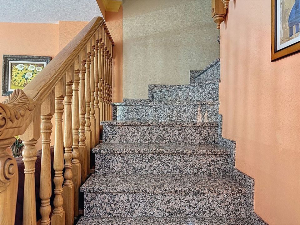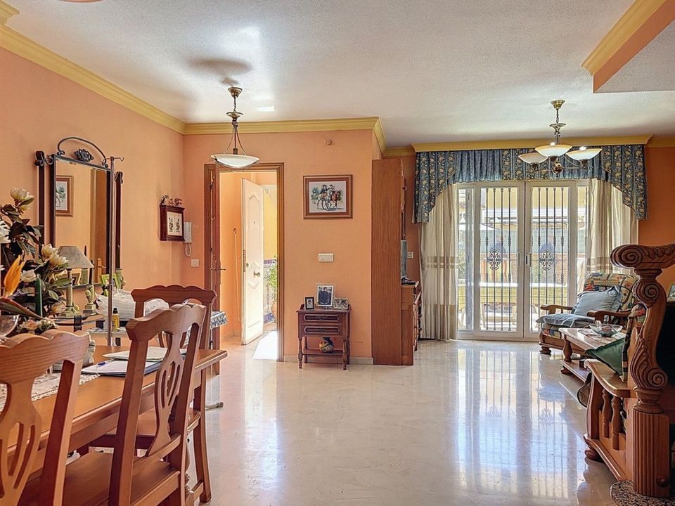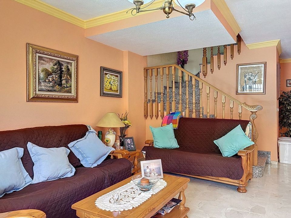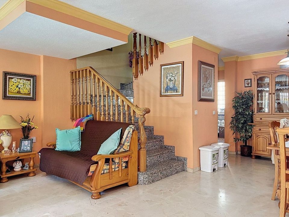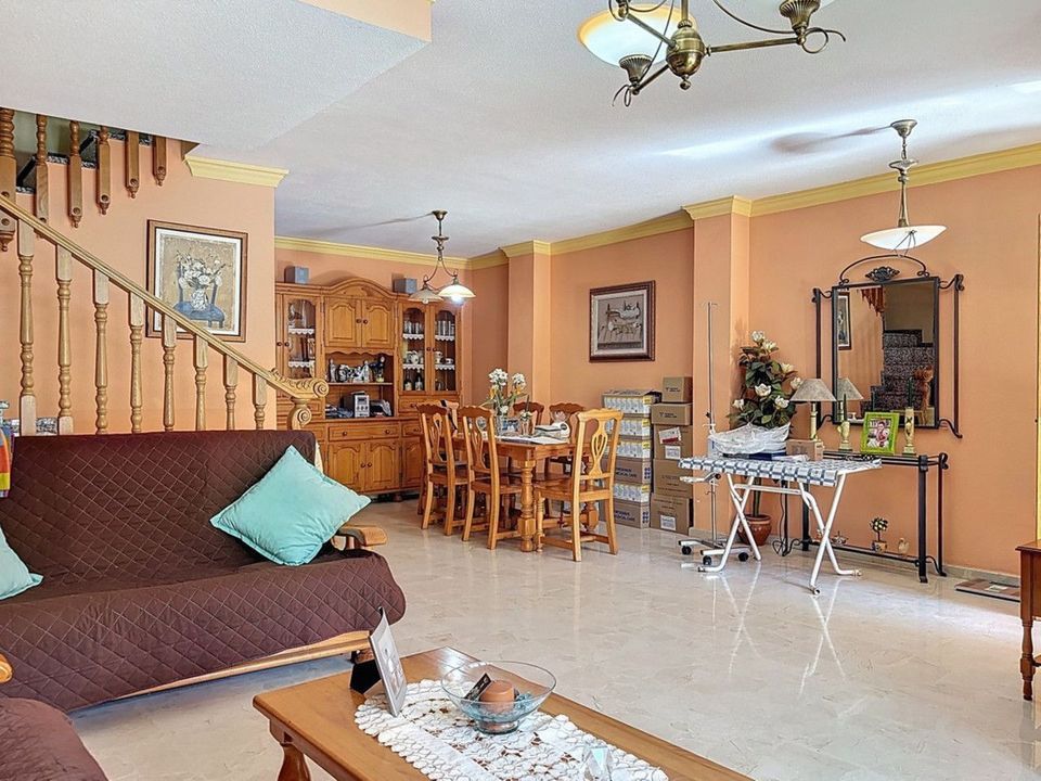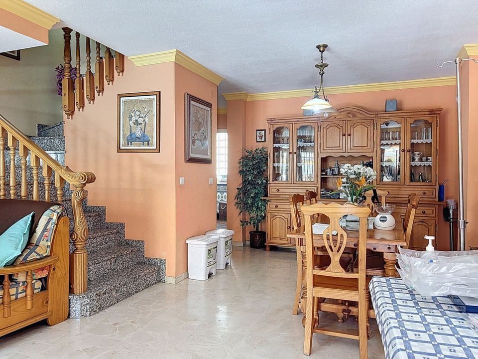 Gelegen in de gewilde woonwijk El Tomillar in Torre del Mar, biedt dit ruime herenhuis meer dan 210 m2 aan bebouwde oppervlakte, verdeeld over meerdere verdiepingen perfect voor comfortabel gezinsleven. De woning beschikt over zes slaapkamers, drie volledige badkamers en een gastentoilet op de begane grond. Op de begane grond vind je een lichte woonkamer, een aparte eetkamer, een volledig uitgeruste keuken en een wasruimte met directe toegang tot het privéterras aan de achterzijde ideaal voor ontspannen in de buitenlucht. Ook is er een gastentoilet op deze verdieping. Op de eerste verdieping bevindt zich de hoofdslaapkamer met en-suite badkamer en een eigen terras, evenals drie extra slaapkamers en een gedeelde badkamer. De zolderverdieping biedt nog twee slaapkamers, een derde badkamer, een extra terras en opbergruimte een flexibele ruimte voor gasten, tieners of een thuiskantoor. Onder de hoofdverdiepingen bevindt zich een ruime kelder die op verschillende manieren kan worden gebruikt, en op het laagste niveau is er een grote garage met plaats voor drie auto's. Deze woning combineert ruimte, functionaliteit en een uitstekende ligging in een rustige maar goed bereikbare wijk, dicht bij scholen, winkels en voorzieningen ideaal voor gezinnen die op zoek zijn naar een thuis aan de Costa del Sol. We zijn blij dat we dit droomhuis binnenkort aan u mogen voorstellen, hetzij persoonlijk, hetzij via een virtuele bezichtiging. Want deze wereld is uniek - net als onze Axarquía. In Andalusië. Aan de Costa del Sol. Hier, aan de zonnige kant van het leven...