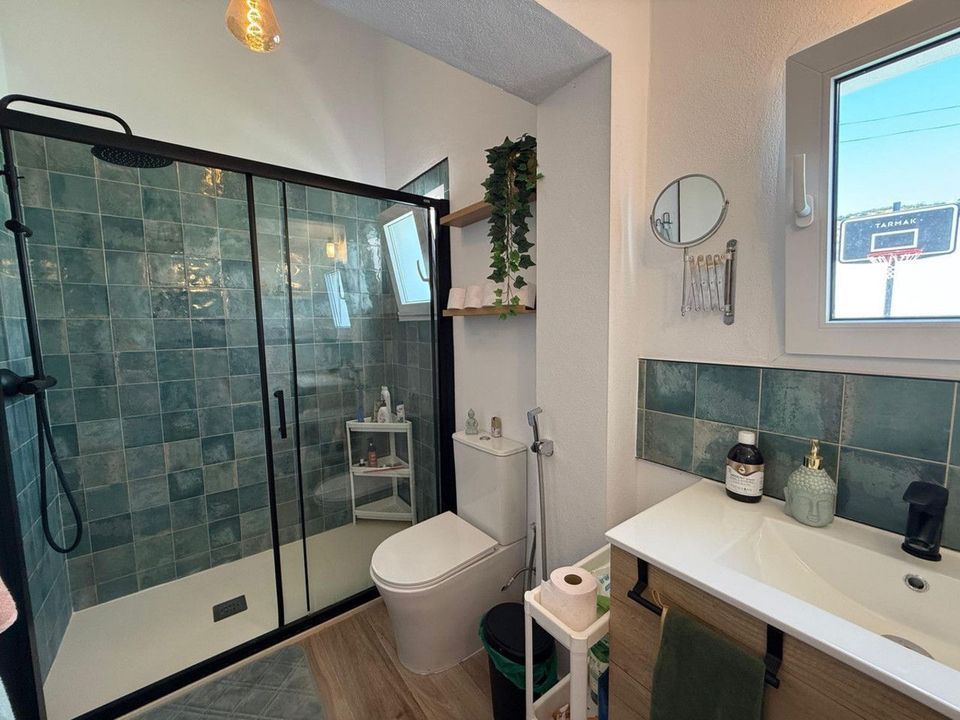 Annexed INDEPENDENT STUDIO with a bedroom and en-suite bathroom, plus a private porch. Space for a small kitchenette.